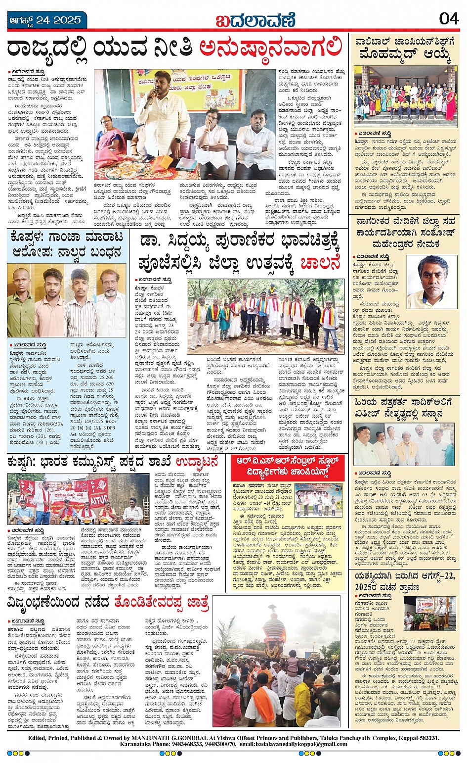ಬದಲಾವಣೆ 24 AUGUST 2025 Page: 4 August 24, 2025 << First << 4 >> Last >> Page 1Page 2Page 3Page 4 × ಬದಲಾವಣೆ 24 AUGUST 2025 page-1page-2page-3page-4 << First << 4 >> Last >> page-1page-2page-3page-4 page-4