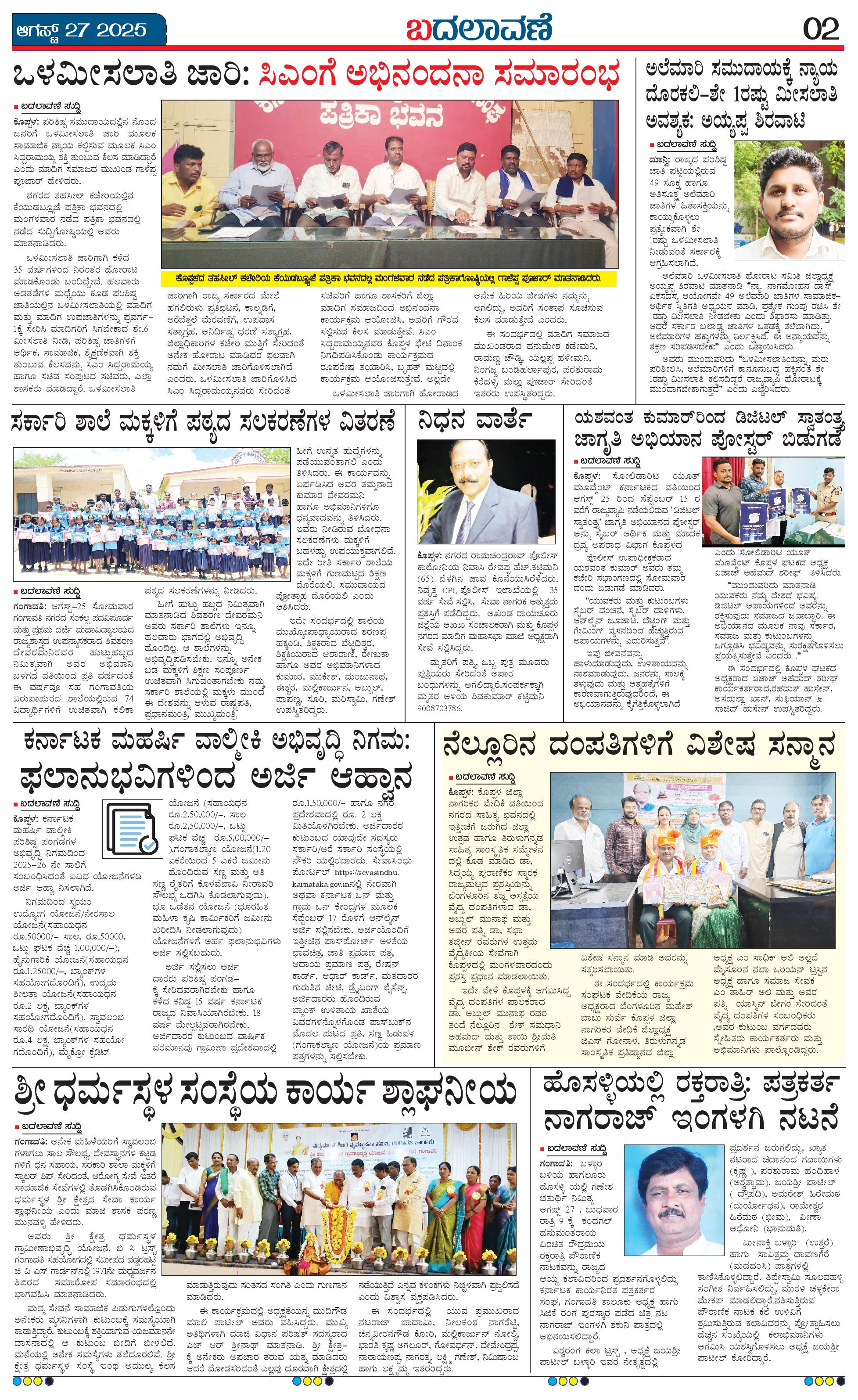ಬದಲಾವಣೆ 27 AUGUST 2025 Page: 2 August 27, 2025 << First << 2 >> Last >> Page 1Page 2Page 3Page 4 × ಬದಲಾವಣೆ 27 AUGUST 2025 page-1page-2page-3page-4 << First << 2 >> Last >> page-1page-2page-3page-4 page-2