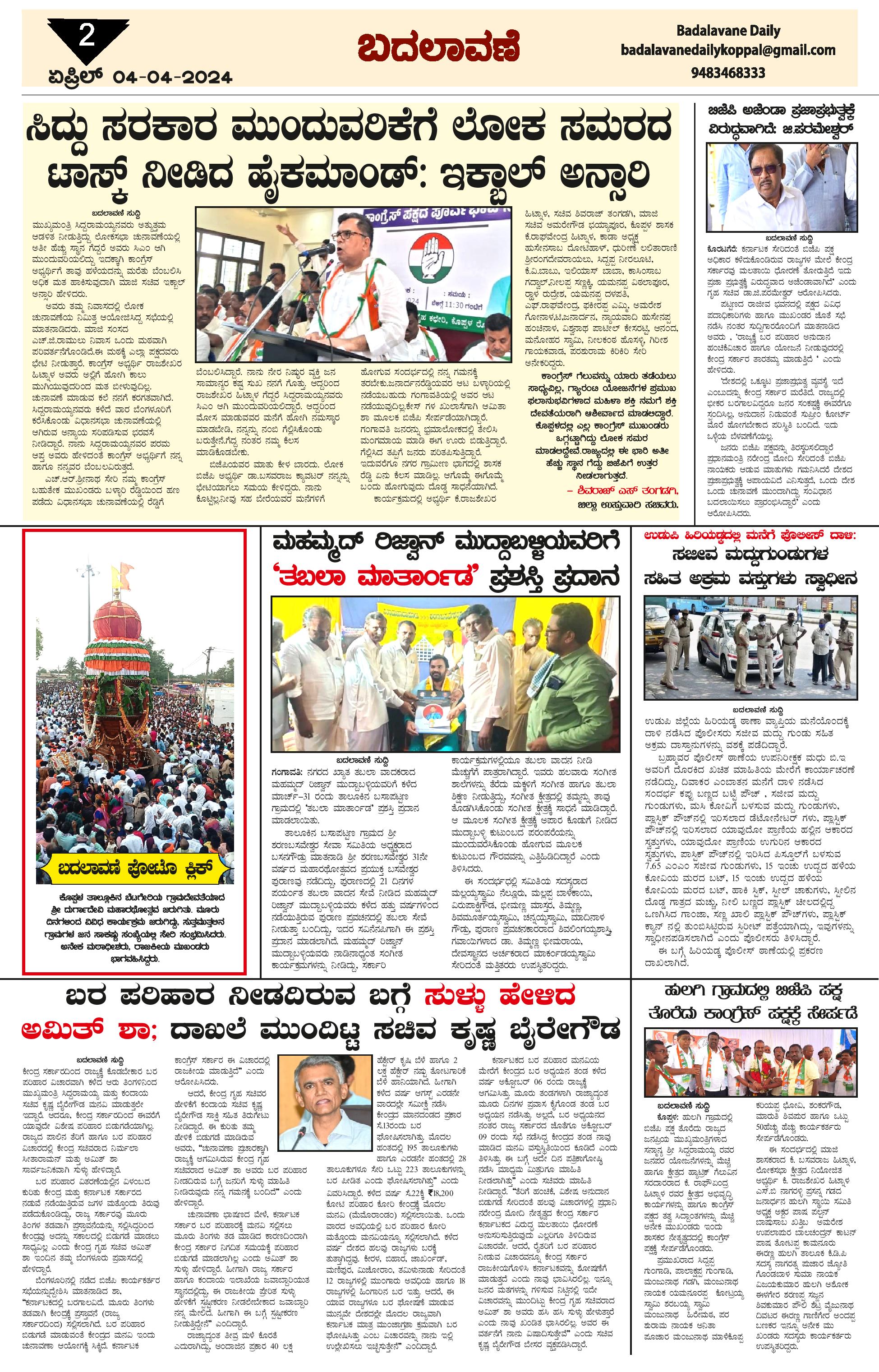 ಬದಲಾವಣೆ 04 April 2024 Page: 2 April 04, 2024 << First << 2 >> Last >> Page 1Page 2Page 3Page 4 × ಬದಲಾವಣೆ 04 April 2024 page-1page-2page-3page-4 << First << 2 >> Last >> page-1page-2page-3page-4 page-2