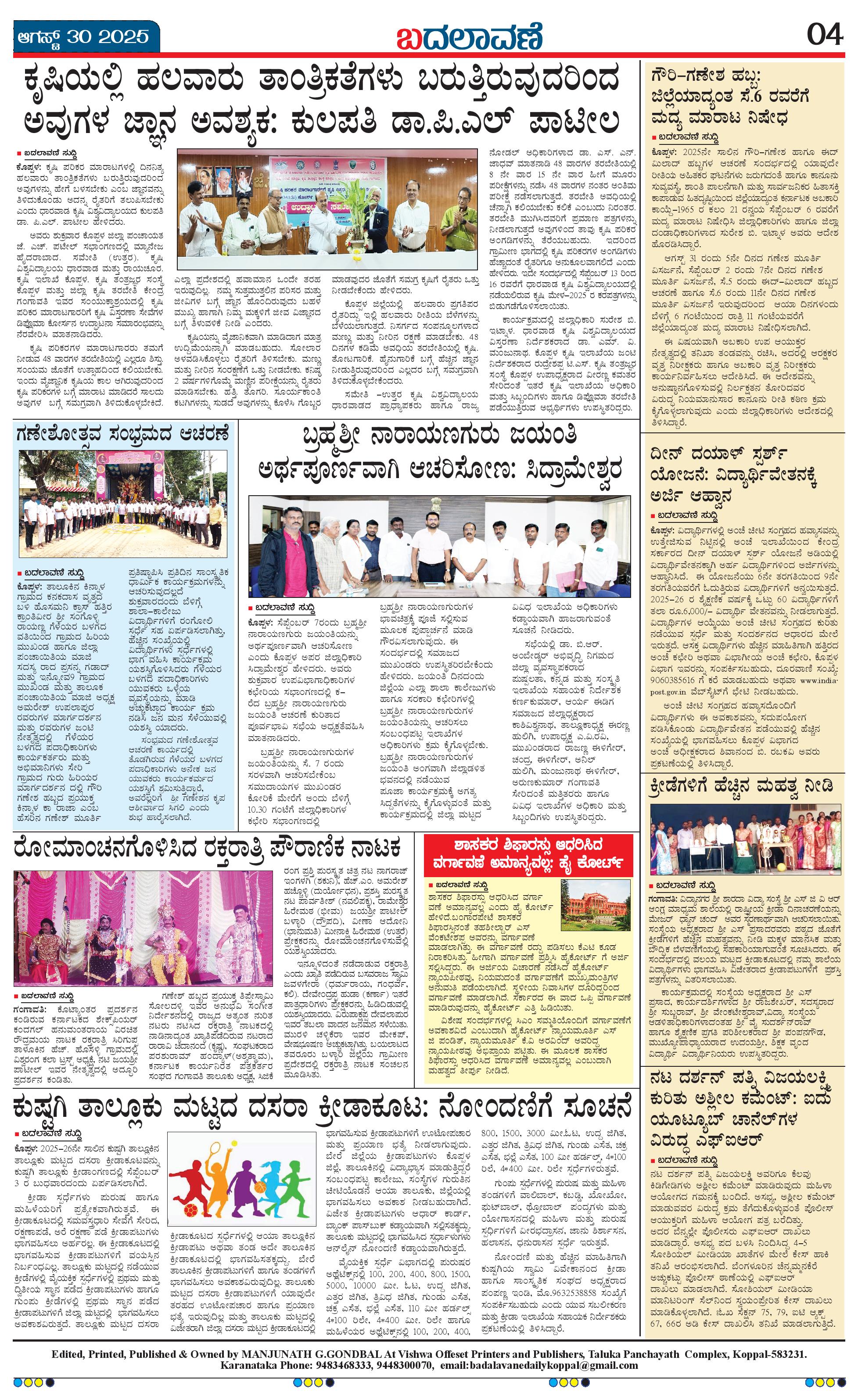 ಬದಲಾವಣೆ 30 AUGUST 2025 Page: 4 August 30, 2025 << First << 4 >> Last >> Page 1Page 2Page 3Page 4 × ಬದಲಾವಣೆ 30 AUGUST 2025 page-1page-2page-3page-4 << First << 4 >> Last >> page-1page-2page-3page-4 page-4