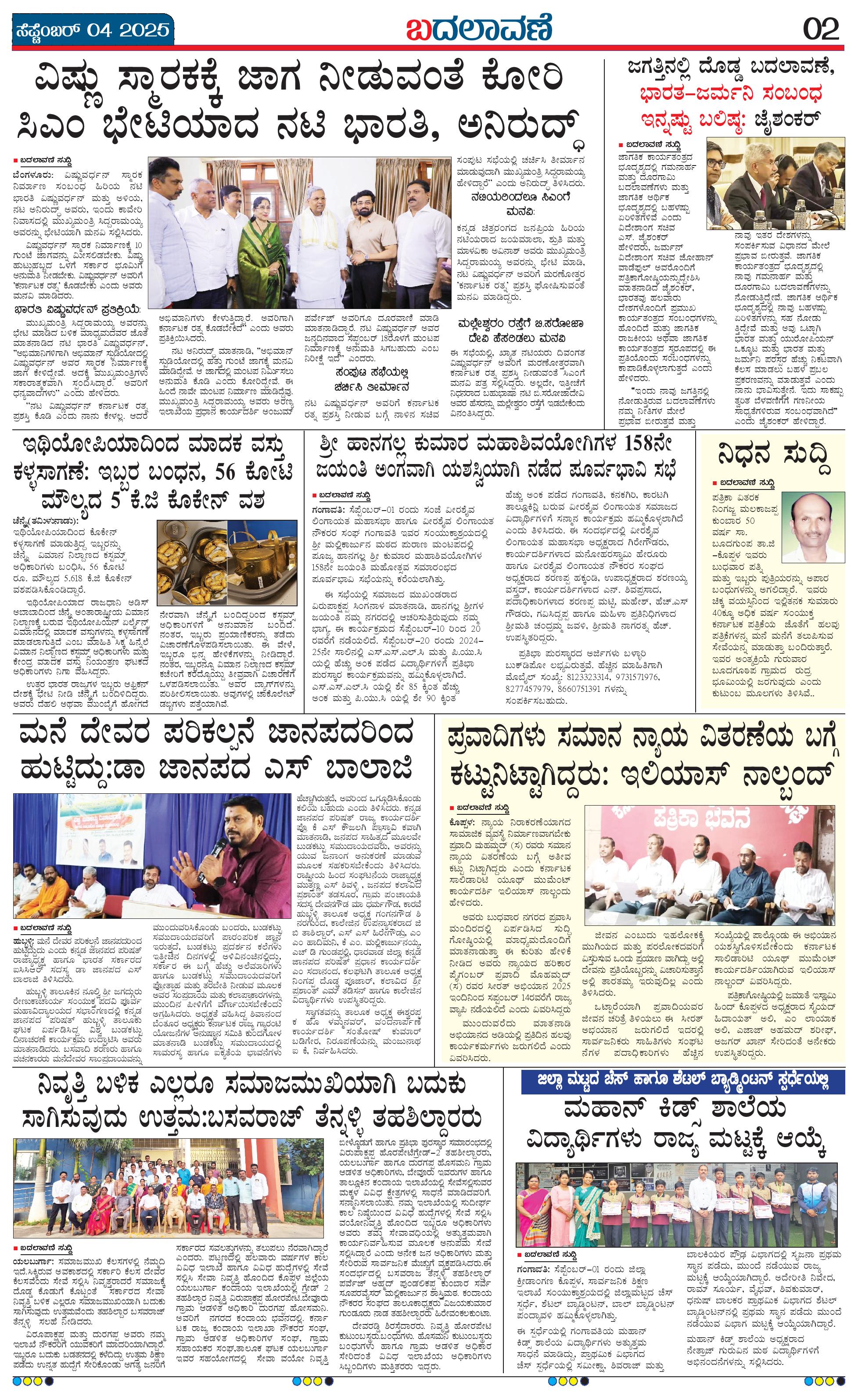 ಬದಲಾವಣೆ 04 SEPTEMBER 2025 Page: 2 September 04, 2025 << First << 2 >> Last >> Page 1Page 2Page 3Page 4 × ಬದಲಾವಣೆ 04 SEPTEMBER 2025 page-1page-2page-3page-4 << First << 2 >> Last >> page-1page-2page-3page-4 page-2