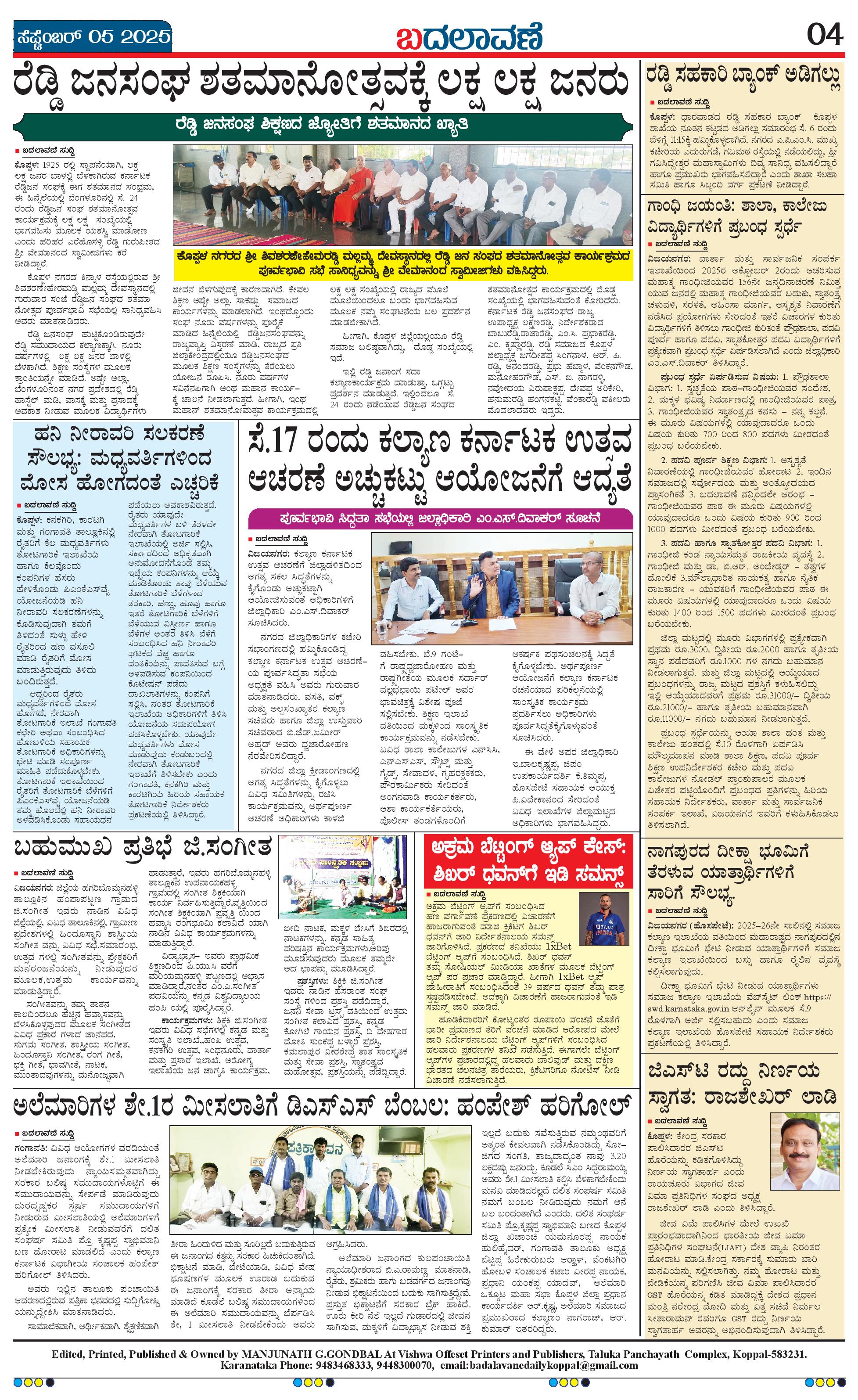 ಬದಲಾವಣೆ 05 SEPTEMBER 2025 Page: 4 September 05, 2025 << First << 4 >> Last >> Page 1Page 2Page 3Page 4 × ಬದಲಾವಣೆ 05 SEPTEMBER 2025 page-1page-2page-3page-4 << First << 4 >> Last >> page-1page-2page-3page-4 page-4