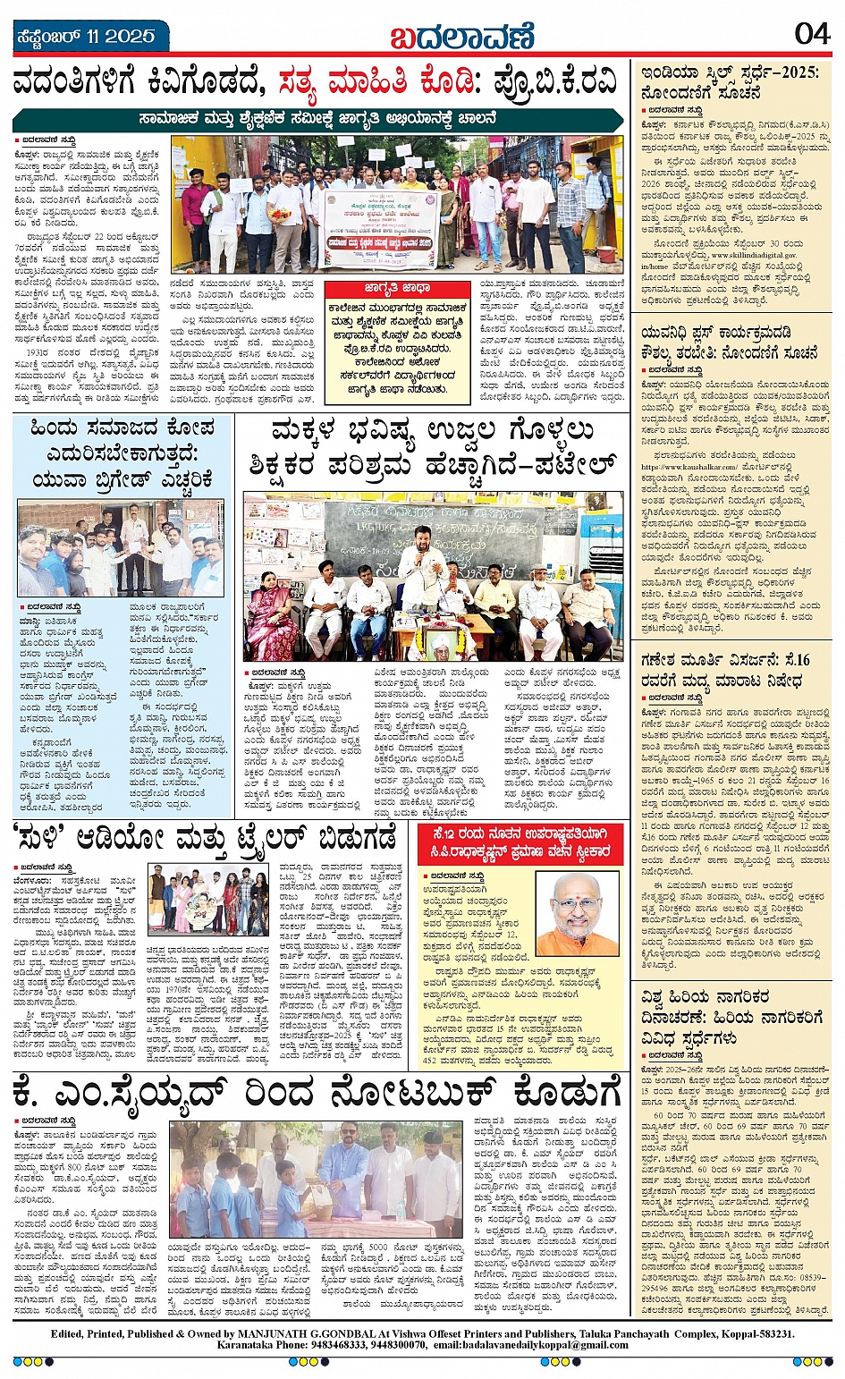 ಬದಲಾವಣೆ 11 SEPTEMBER 2025 Page: 4 September 11, 2025 << First << 4 >> Last >> Page 1Page 2Page 3Page 4 × ಬದಲಾವಣೆ 11 SEPTEMBER 2025 page-1page-2page-3page-4 << First << 4 >> Last >> page-1page-2page-3page-4 page-4