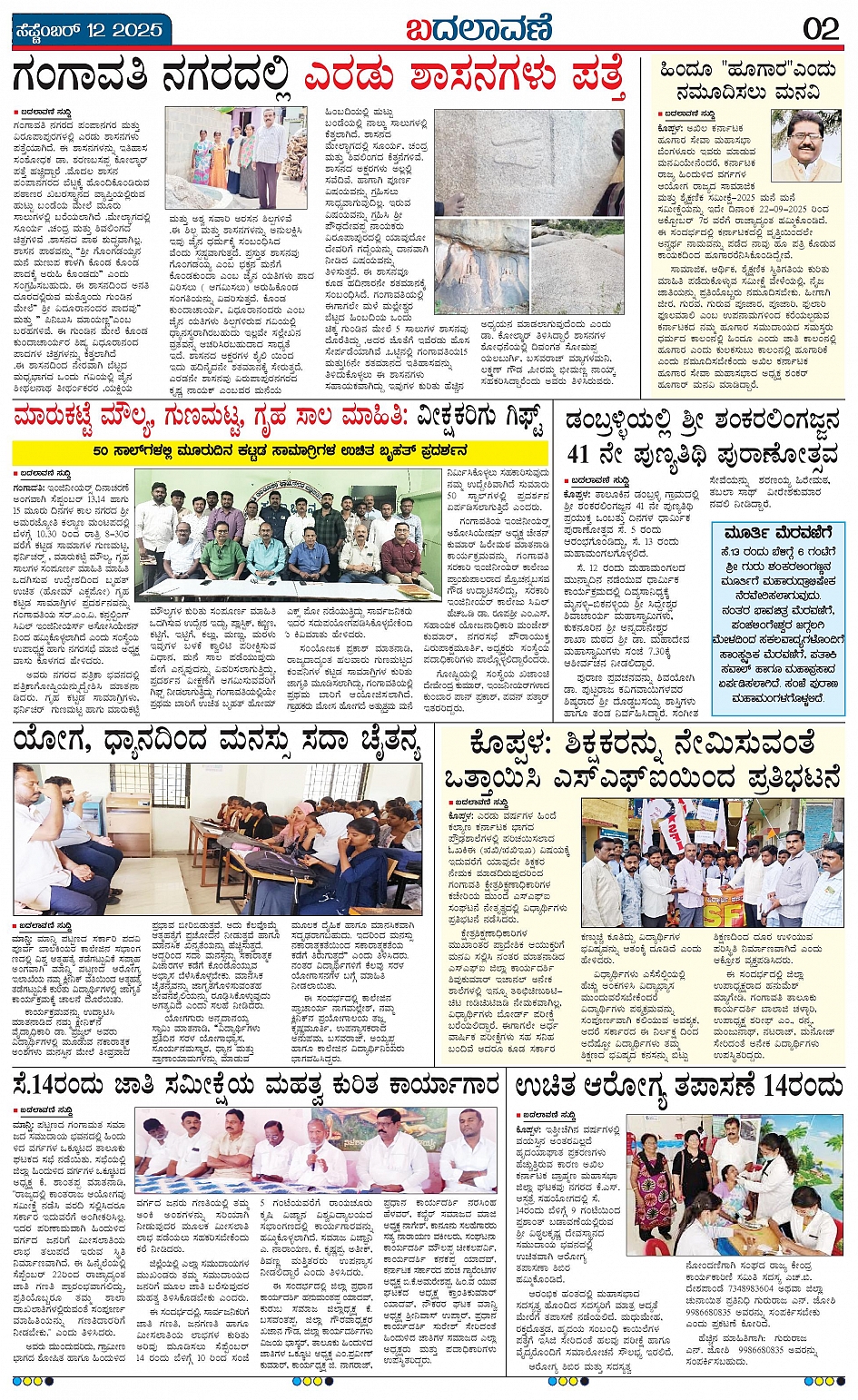 ಬದಲಾವಣೆ 12 SEPTEMBER 2025 Page: 2 September 12, 2025 << First << 2 >> Last >> Page 1Page 2Page 3Page 4 × ಬದಲಾವಣೆ 12 SEPTEMBER 2025 page-1page-2page-3page-4 << First << 2 >> Last >> page-1page-2page-3page-4 page-2