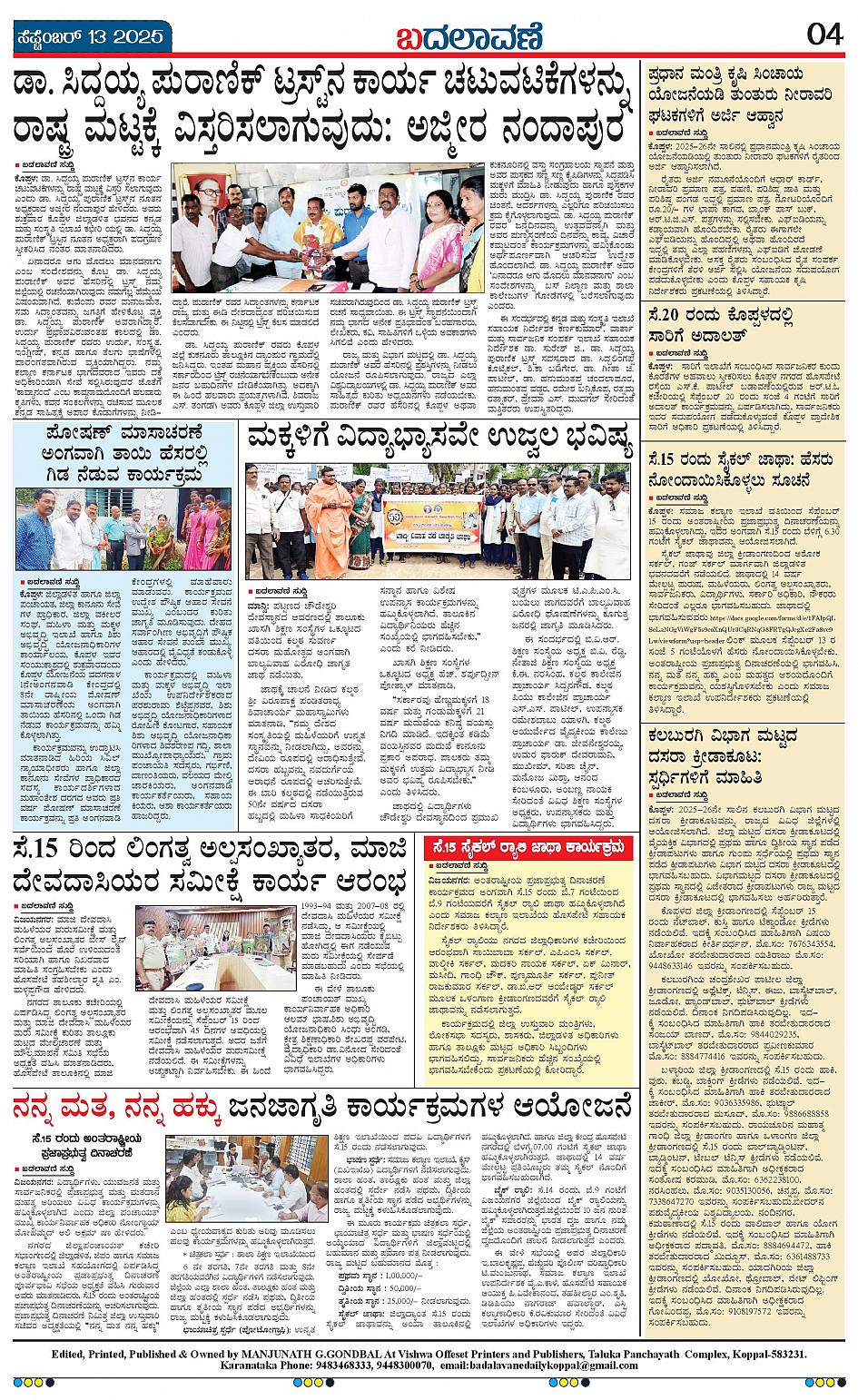 ಬದಲಾವಣೆ 13 SEPTEMBER 2025 Page: 4 September 13, 2025 << First << 4 >> Last >> Page 1Page 2Page 3Page 4 × ಬದಲಾವಣೆ 13 SEPTEMBER 2025 page-1page-2page-3page-4 << First << 4 >> Last >> page-1page-2page-3page-4 page-4
