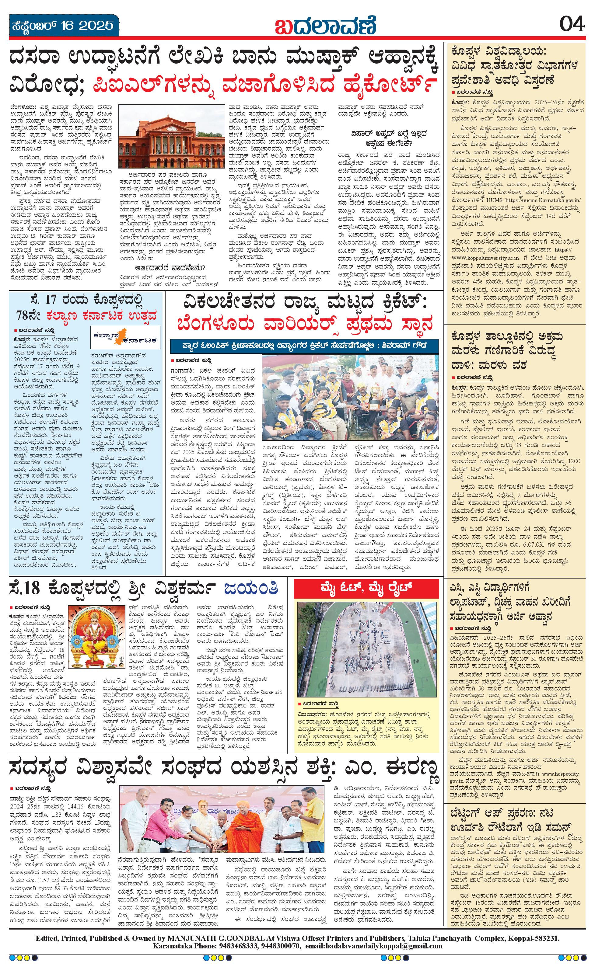 ಬದಲಾವಣೆ 16 SEPTEMBER 2025 Page: 4 September 16, 2025 << First << 4 >> Last >> Page 1Page 2Page 3Page 4 × ಬದಲಾವಣೆ 16 SEPTEMBER 2025 page-1page-2page-3page-4 << First << 4 >> Last >> page-1page-2page-3page-4 page-4