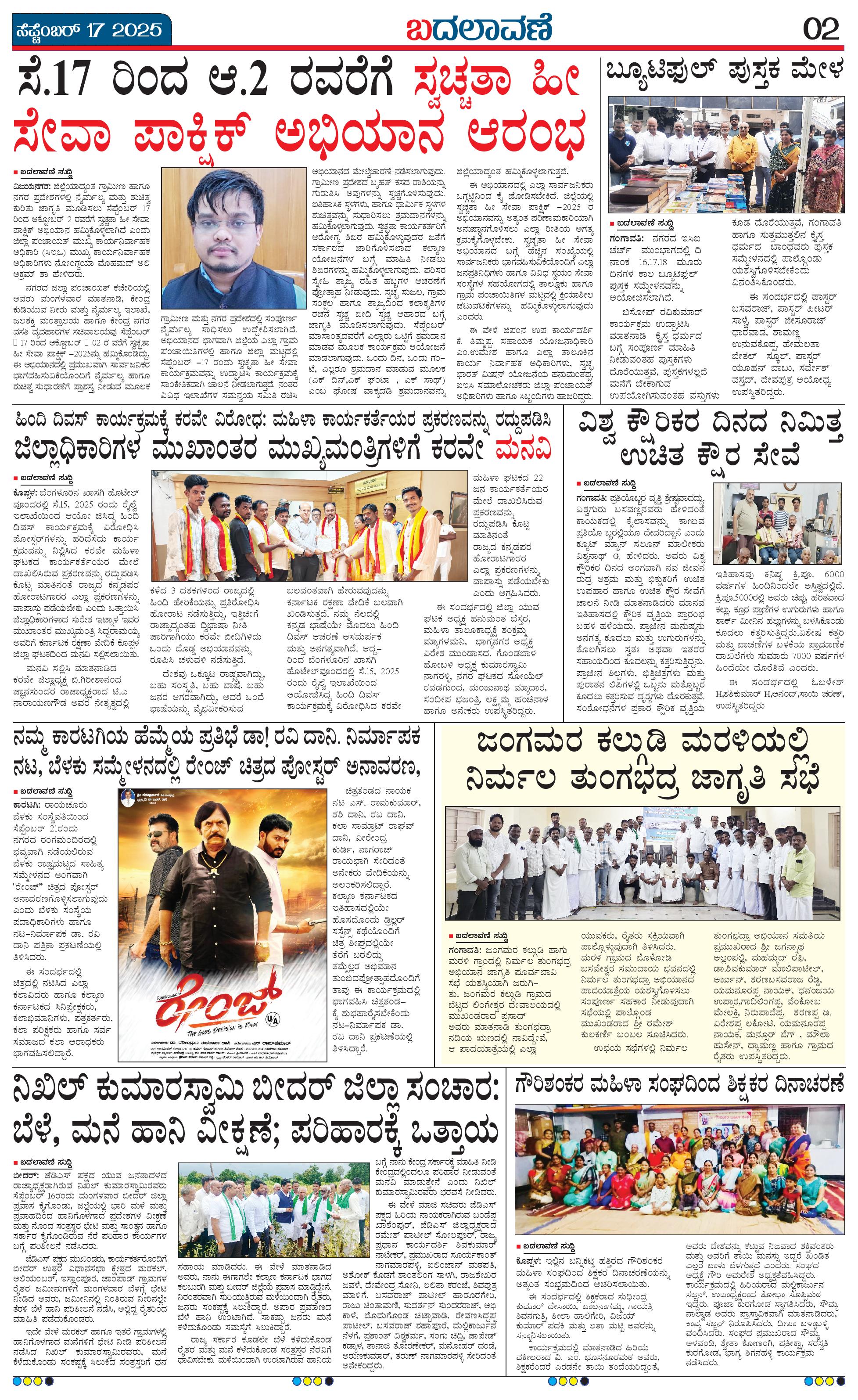 ಬದಲಾವಣೆ 17 SEPTEMBER 2025 Page: 2 September 17, 2025 << First << 2 >> Last >> Page 1Page 2Page 3Page 4 × ಬದಲಾವಣೆ 17 SEPTEMBER 2025 page-1page-2page-3page-4 << First << 2 >> Last >> page-1page-2page-3page-4 page-2
