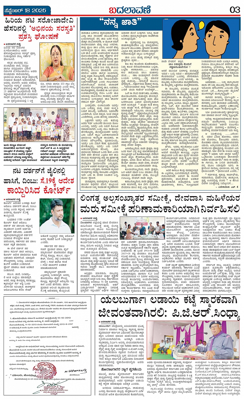 ಬದಲಾವಣೆ 18 SEPTEMBER 2025 Page: 3 September 18, 2025 << First << 3 >> Last >> Page 1Page 2Page 3Page 4 × ಬದಲಾವಣೆ 18 SEPTEMBER 2025 page-1page-2page-3page-4 << First << 3 >> Last >> page-1page-2page-3page-4 page-3