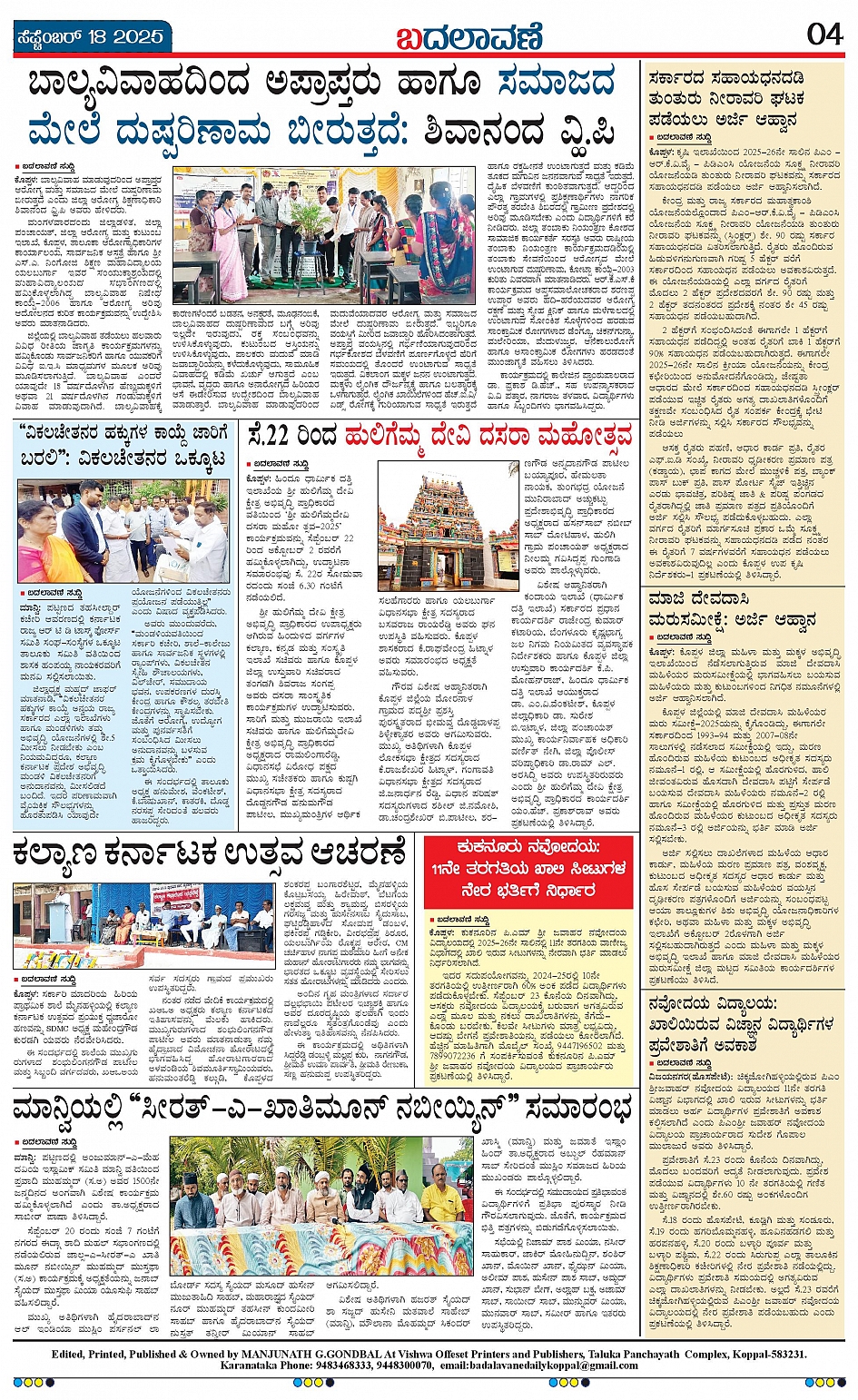 ಬದಲಾವಣೆ 18 SEPTEMBER 2025 Page: 4 September 18, 2025 << First << 4 >> Last >> Page 1Page 2Page 3Page 4 × ಬದಲಾವಣೆ 18 SEPTEMBER 2025 page-1page-2page-3page-4 << First << 4 >> Last >> page-1page-2page-3page-4 page-4
