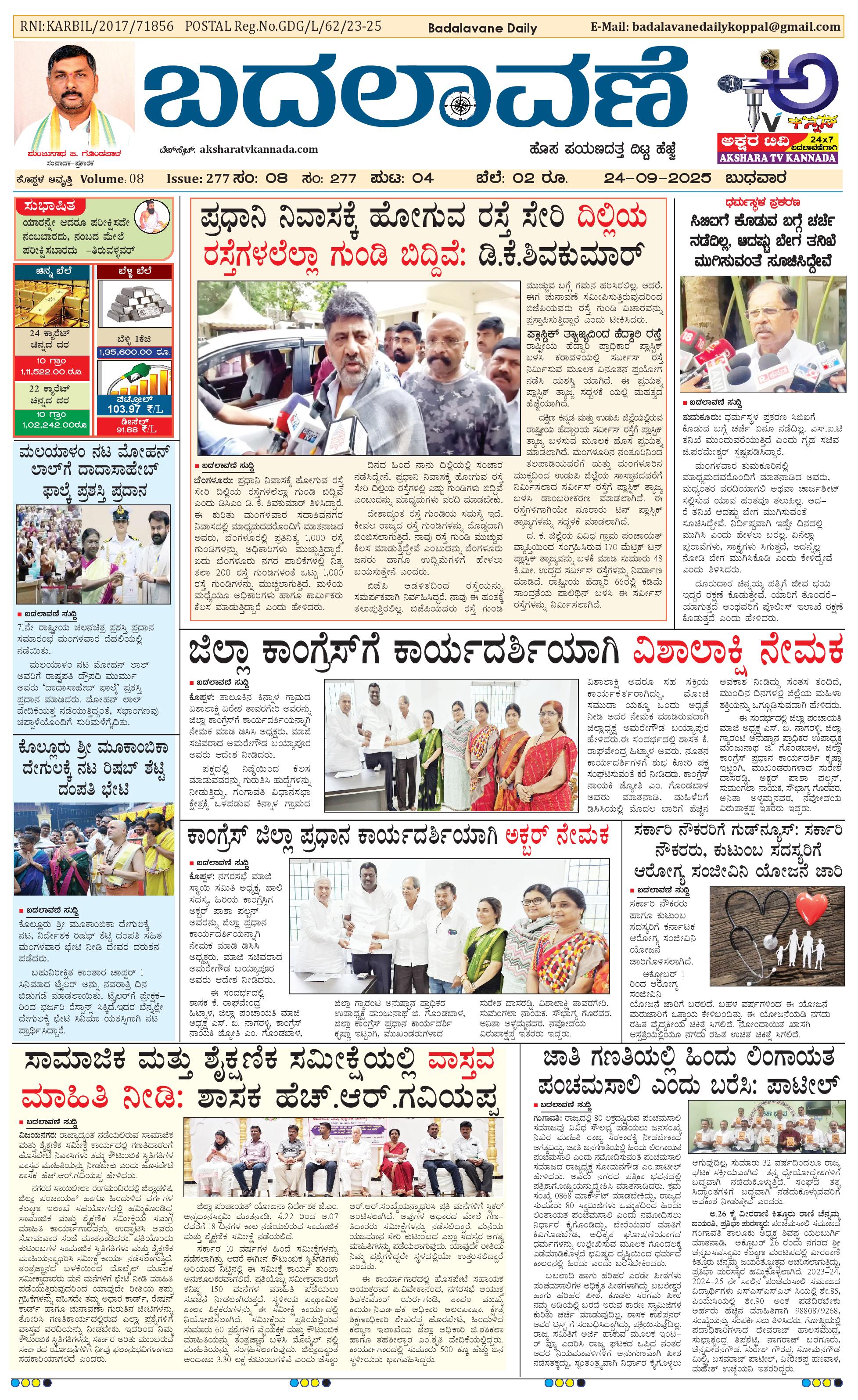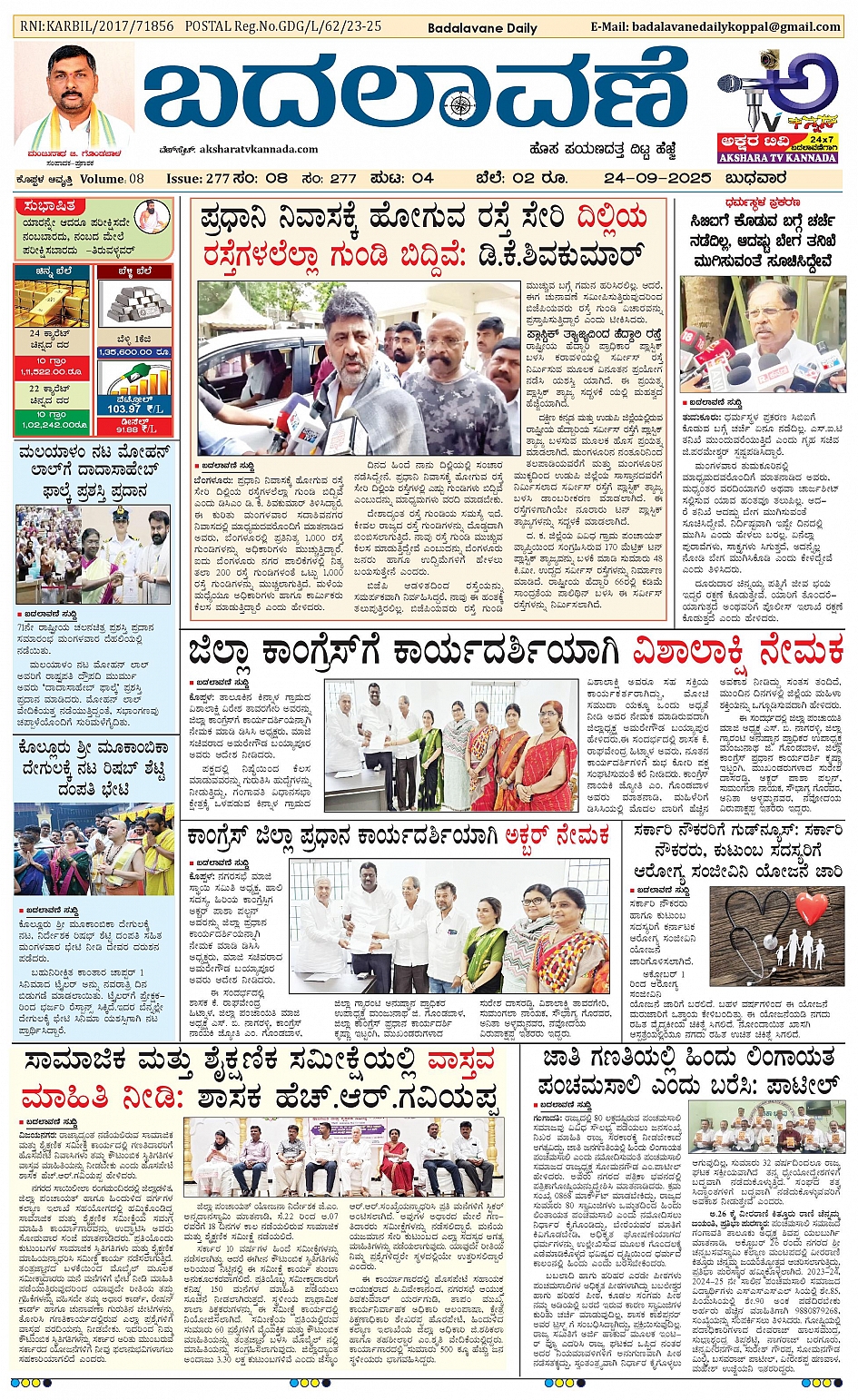 ಬದಲಾವಣೆ 24 SEPTEMBER 2025 September 24, 2025 << First << 1 >> Last >> Page 1Page 2Page 3Page 4 × ಬದಲಾವಣೆ 24 SEPTEMBER 2025 page-1page-2page-3page-4 << First << 1 >> Last >> page-1page-2page-3page-4 page-1