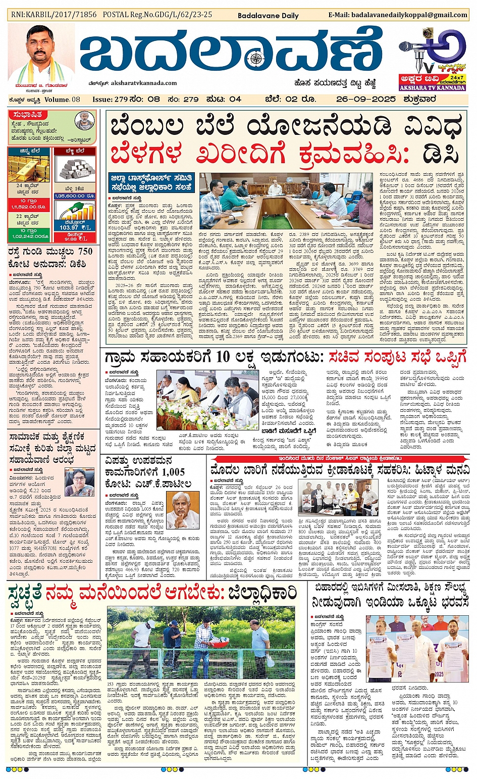 ಬದಲಾವಣೆ 26 SEPTEMBER 2025 September 26, 2025 << First << 1 >> Last >> Page 1Page 2Page 3Page 4 × ಬದಲಾವಣೆ 26 SEPTEMBER 2025 page-1page-2page-3page-4 << First << 1 >> Last >> page-1page-2page-3page-4 page-1