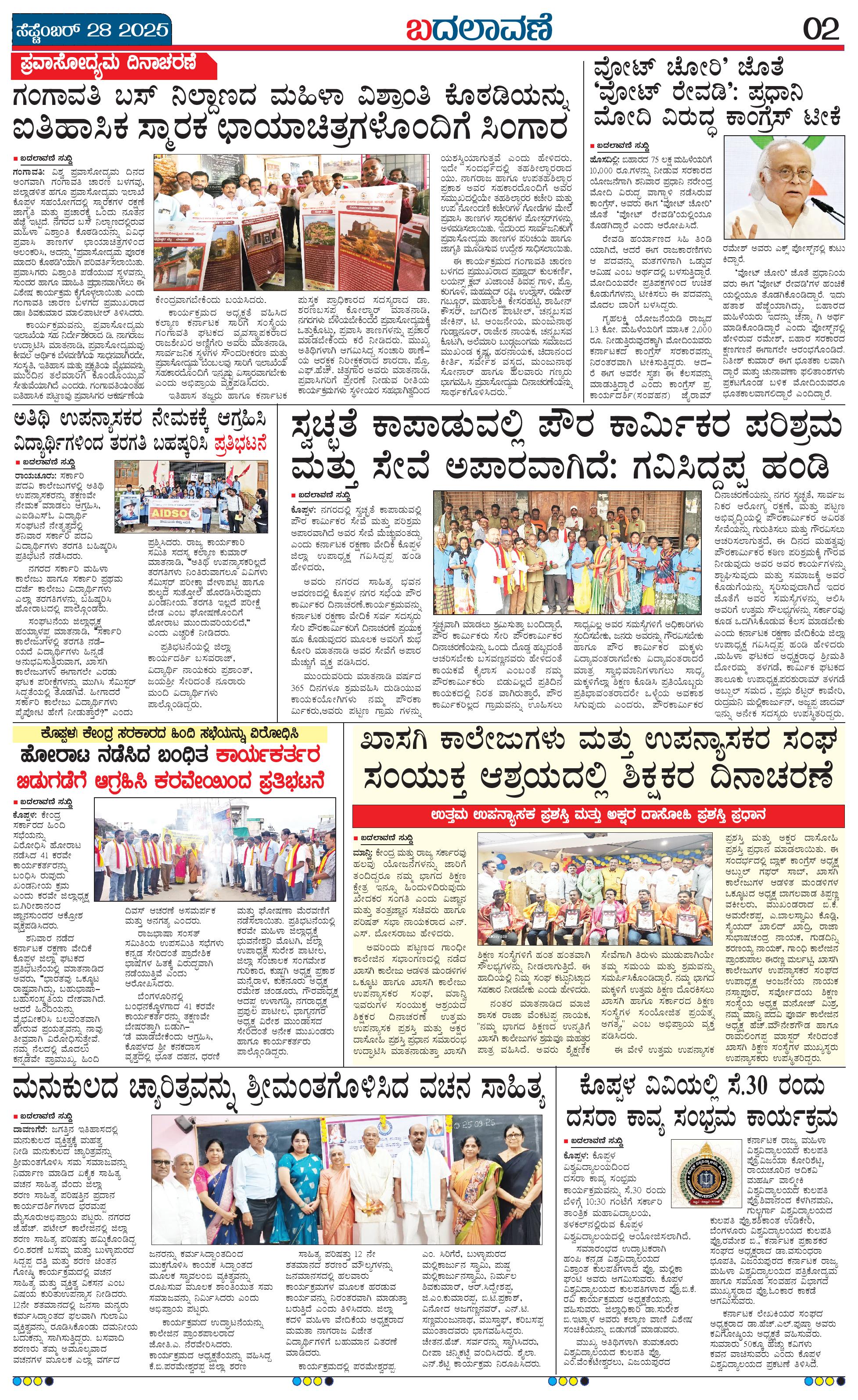 ಬದಲಾವಣೆ 28 SEPTEMBER 2025 Page: 2 September 28, 2025 << First << 2 >> Last >> Page 1Page 2Page 3Page 4 × ಬದಲಾವಣೆ 28 SEPTEMBER 2025 page-1page-2page-3page-4 << First << 2 >> Last >> page-1page-2page-3page-4 page-2