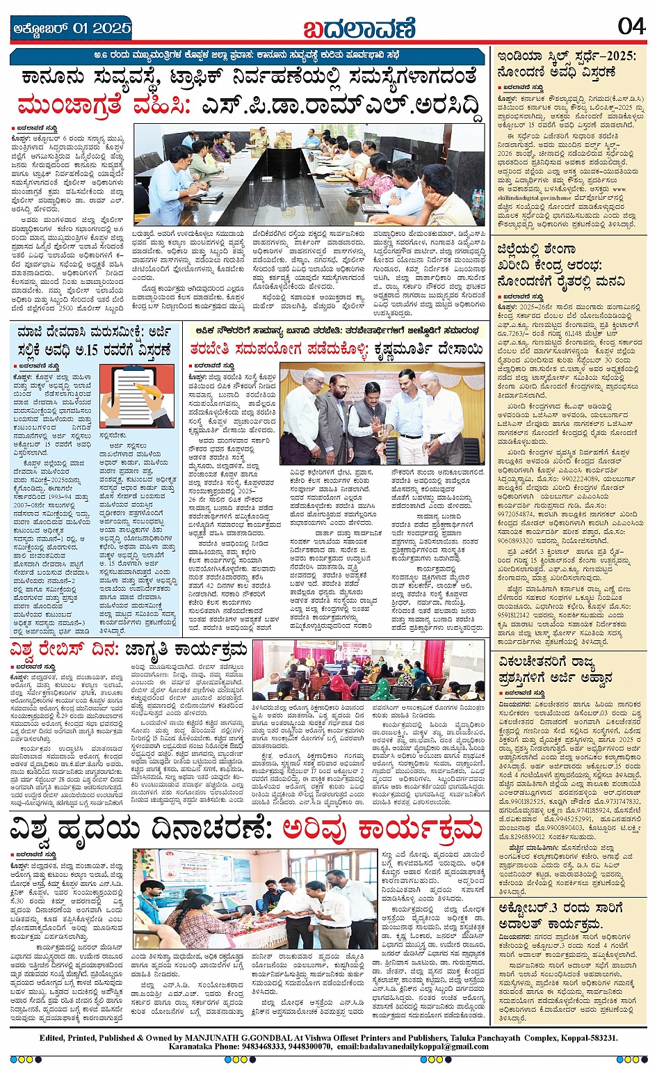 ಬದಲಾವಣೆ 01 OCTOBER 2025 Page: 4 October 01, 2025 << First << 4 >> Last >> Page 1Page 2Page 3Page 4 × ಬದಲಾವಣೆ 01 OCTOBER 2025 page-1page-2page-3page-4 << First << 4 >> Last >> page-1page-2page-3page-4 page-4