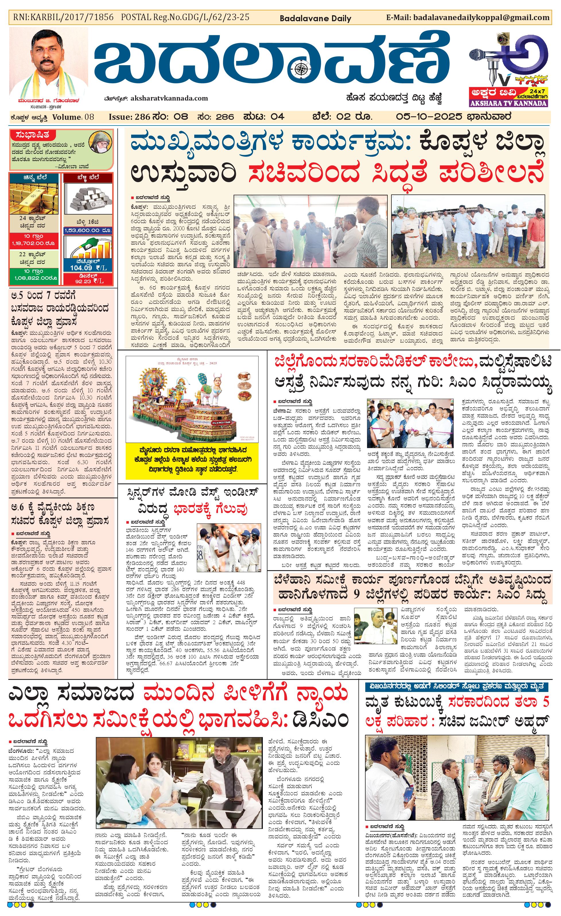 ಬದಲಾವಣೆ 05 OCTOBER 2025 October 05, 2025 << First << 1 >> Last >> Page 1Page 2Page 3Page 4 × ಬದಲಾವಣೆ 05 OCTOBER 2025 page-1page-2page-3page-4 << First << 1 >> Last >> page-1page-2page-3page-4 page-1