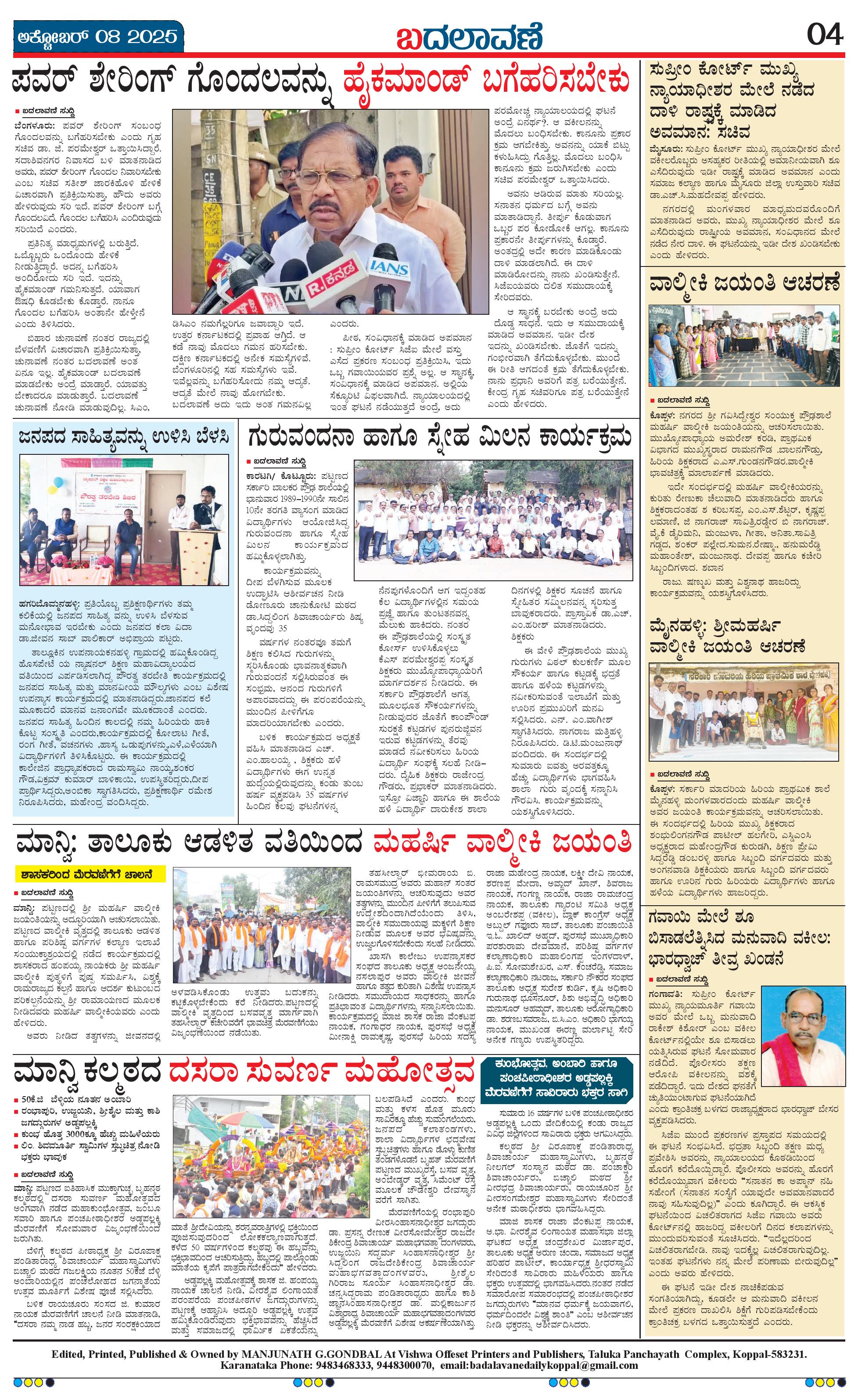 ಬದಲಾವಣೆ 08 OCTOBER 2025 Page: 4 October 08, 2025 << First << 4 >> Last >> Page 1Page 2Page 3Page 4 × ಬದಲಾವಣೆ 08 OCTOBER 2025 page-1page-2page-3page-4 << First << 4 >> Last >> page-1page-2page-3page-4 page-4