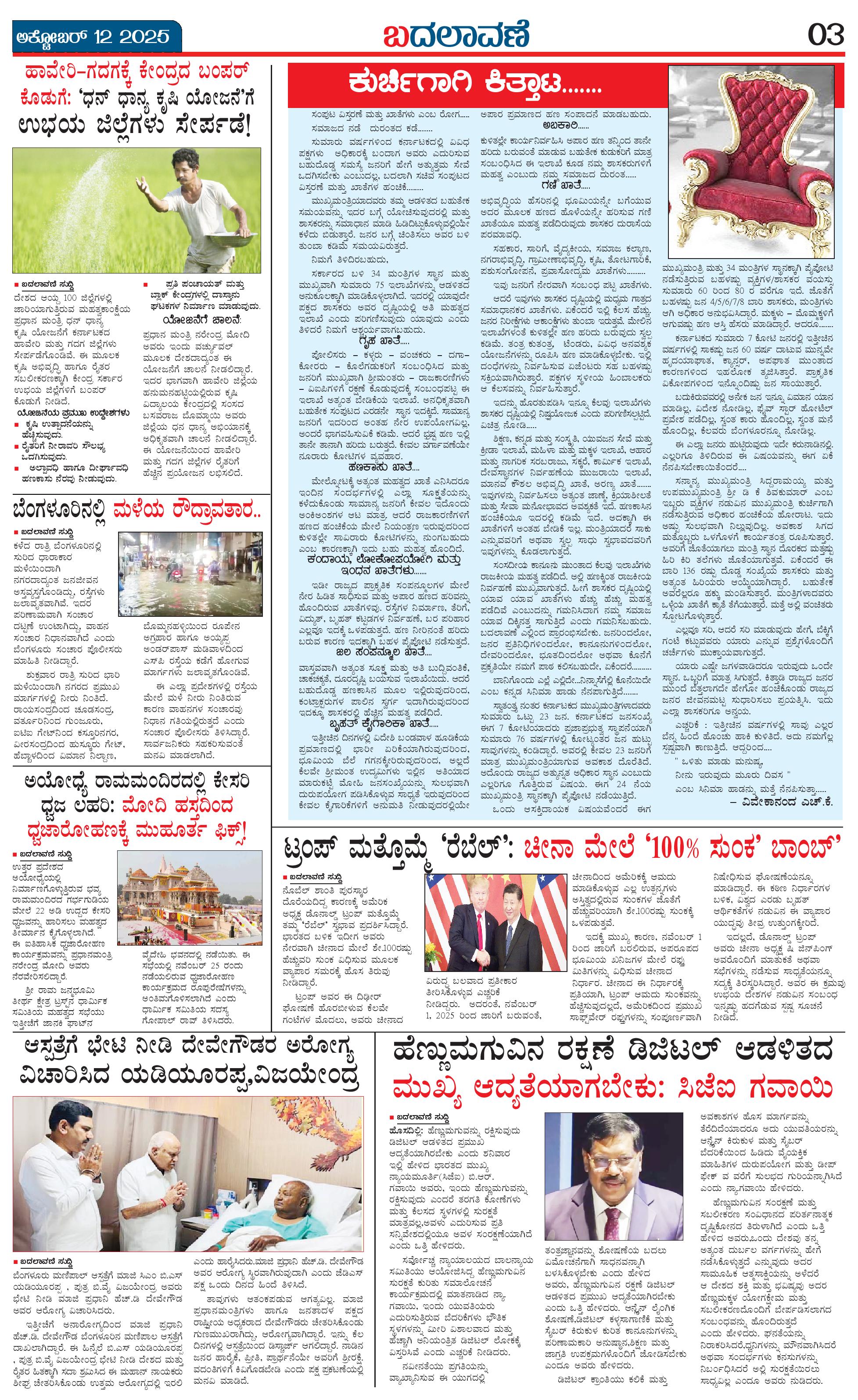 ಬದಲಾವಣೆ 12 OCTOBER 2025 Page: 3 October 12, 2025 << First << 3 >> Last >> Page 1Page 2Page 3Page 4 × ಬದಲಾವಣೆ 12 OCTOBER 2025 page-1page-2page-3page-4 << First << 3 >> Last >> page-1page-2page-3page-4 page-3