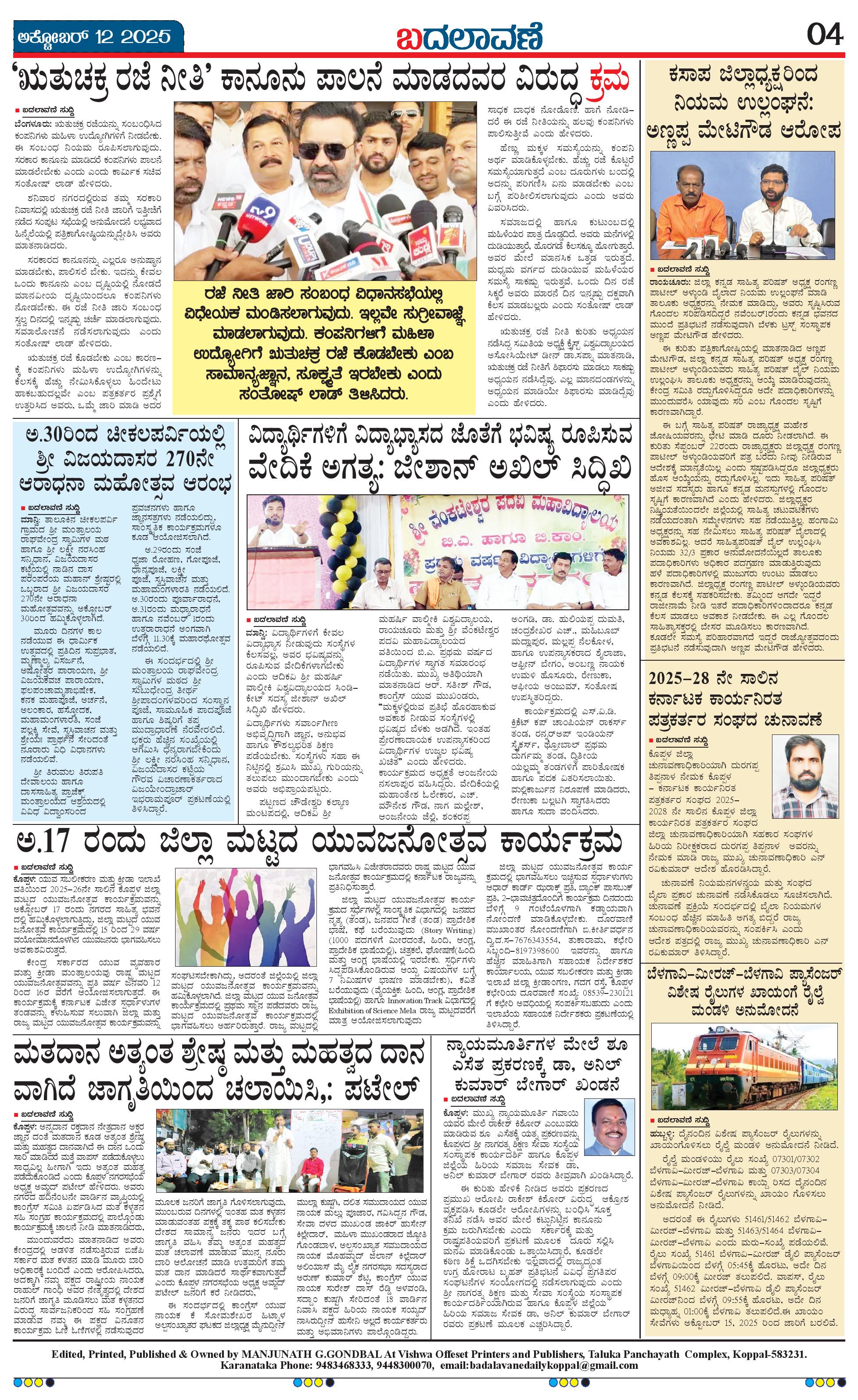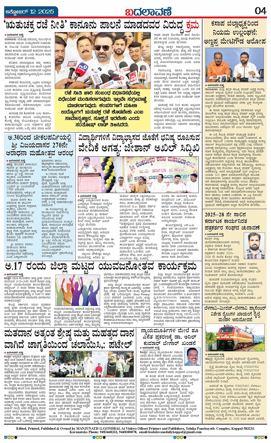 ಬದಲಾವಣೆ 12 OCTOBER 2025 Page: 4 October 12, 2025 << First << 4 >> Last >> Page 1Page 2Page 3Page 4 × ಬದಲಾವಣೆ 12 OCTOBER 2025 page-1page-2page-3page-4 << First << 4 >> Last >> page-1page-2page-3page-4 page-4