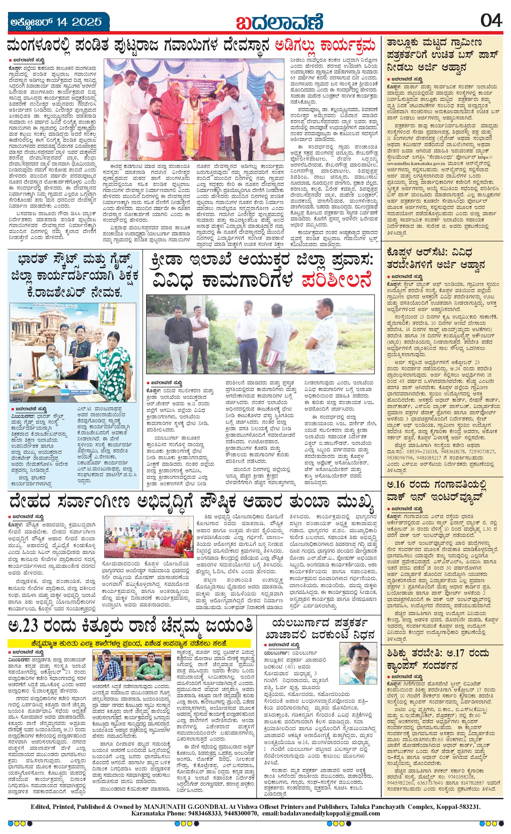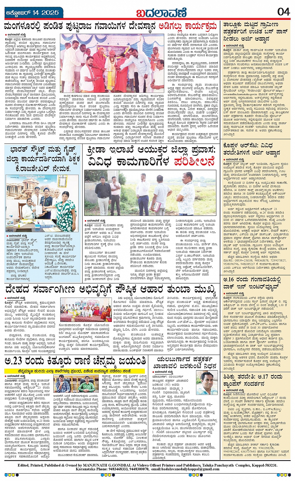 ಬದಲಾವಣೆ 14 OCTOBER 2025 Page: 4 October 14, 2025 << First << 4 >> Last >> Page 1Page 2Page 3Page 4 × ಬದಲಾವಣೆ 14 OCTOBER 2025 page-1page-2page-3page-4 << First << 4 >> Last >> page-1page-2page-3page-4 page-4