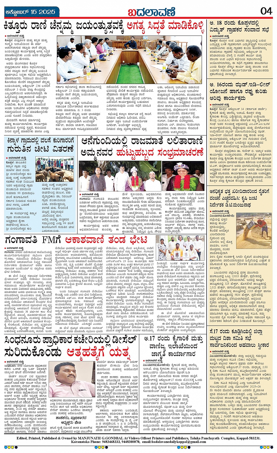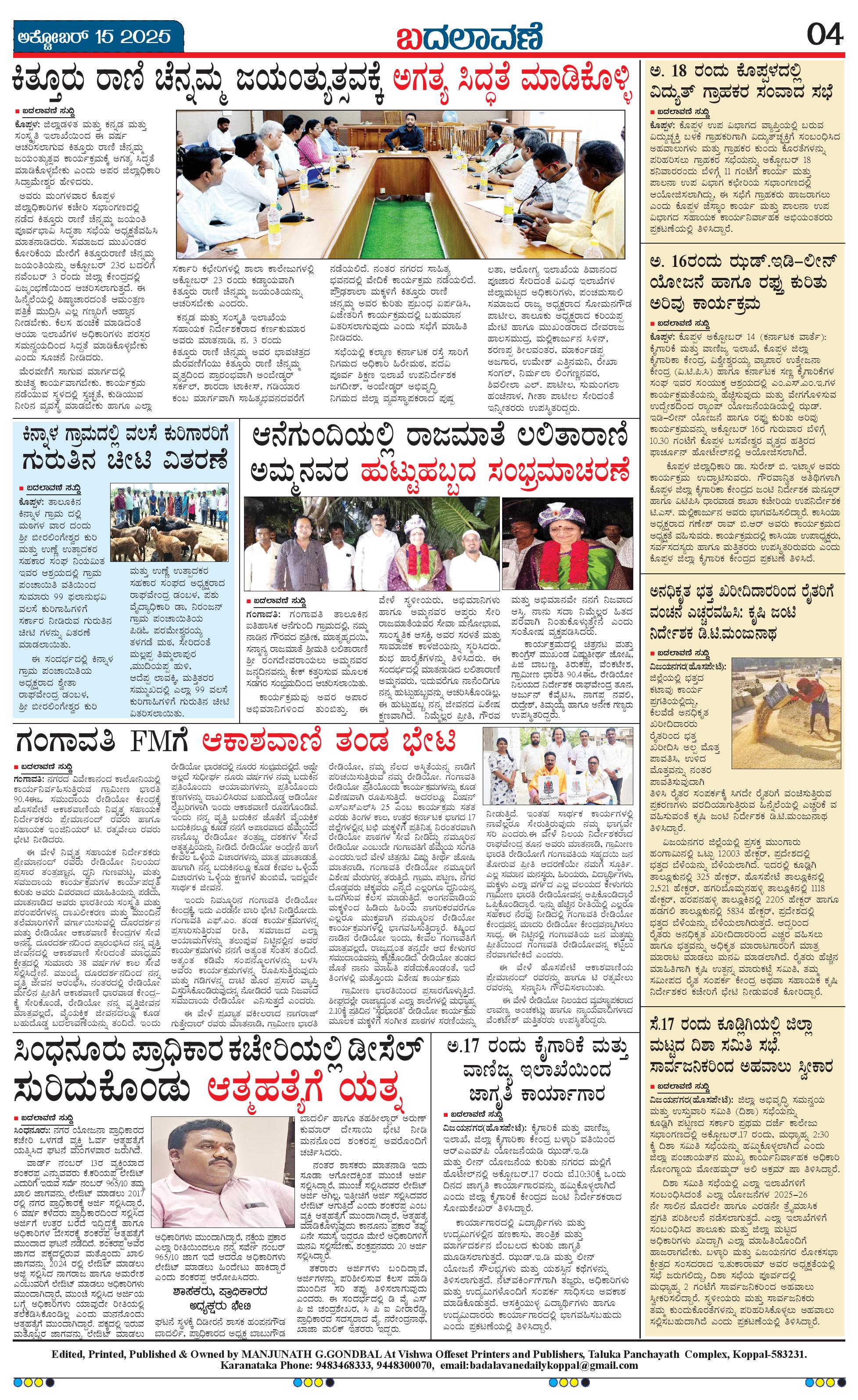 ಬದಲಾವಣೆ 15 OCTOBER 2025 Page: 4 October 15, 2025 << First << 4 >> Last >> Page 1Page 2Page 3Page 4 × ಬದಲಾವಣೆ 15 OCTOBER 2025 page-1page-2page-3page-4 << First << 4 >> Last >> page-1page-2page-3page-4 page-4