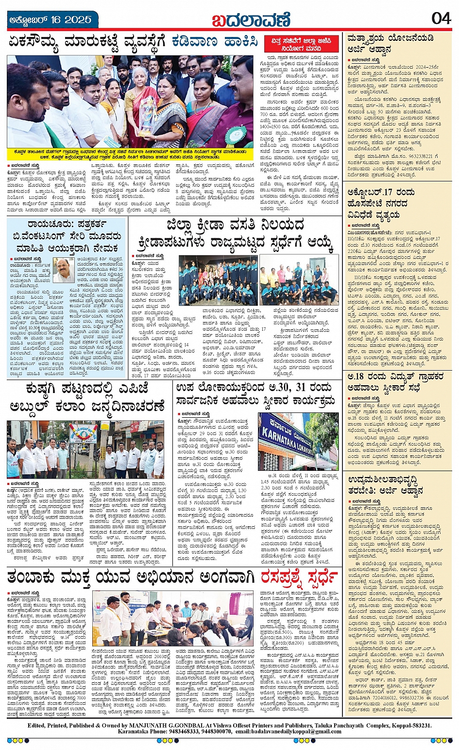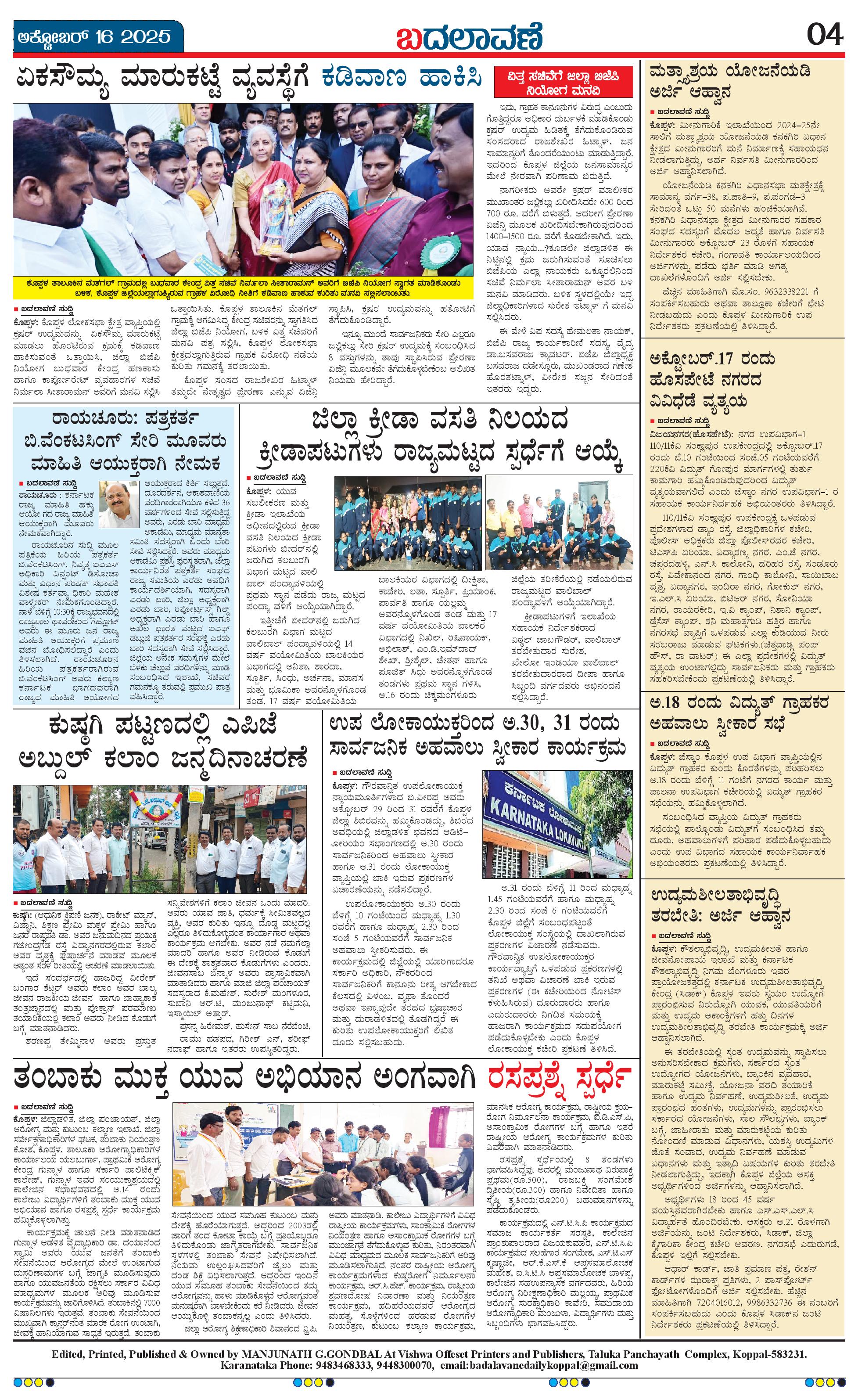 ಬದಲಾವಣೆ 16 OCTOBER 2025 Page: 4 October 16, 2025 << First << 4 >> Last >> Page 1Page 2Page 3Page 4 × ಬದಲಾವಣೆ 16 OCTOBER 2025 page-1page-2page-3page-4 << First << 4 >> Last >> page-1page-2page-3page-4 page-4