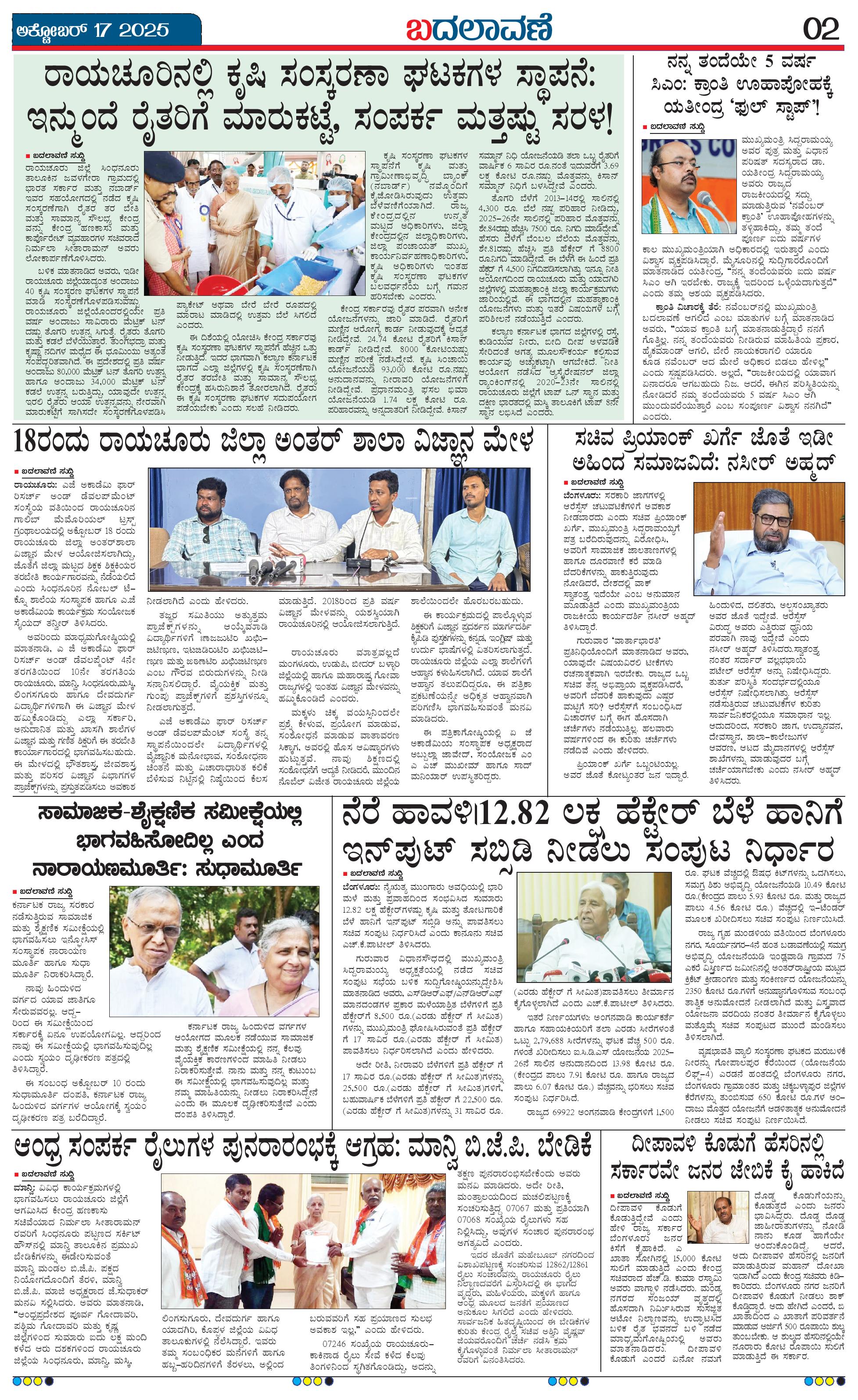 ಬದಲಾವಣೆ 17 OCTOBER 2025 Page: 2 October 17, 2025 << First << 2 >> Last >> Page 1Page 2Page 3Page 4 × ಬದಲಾವಣೆ 17 OCTOBER 2025 page-1page-2page-3page-4 << First << 2 >> Last >> page-1page-2page-3page-4 page-2