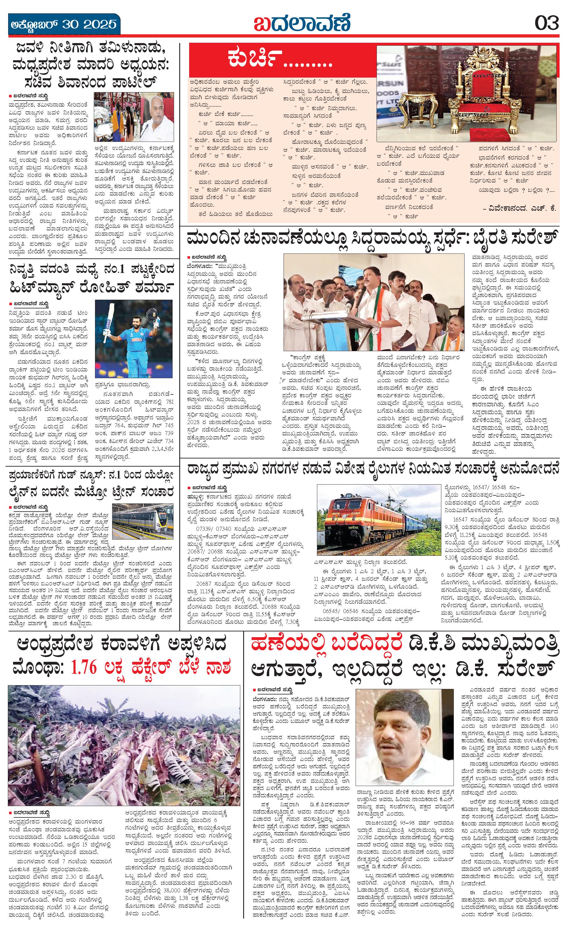 ಬದಲಾವಣೆ 30 OCTOBER 2025 Page: 3 October 30, 2025 << First << 3 >> Last >> Page 1Page 2Page 3Page 4 × ಬದಲಾವಣೆ 30 OCTOBER 2025 page-1page-2page-3page-4 << First << 3 >> Last >> page-1page-2page-3page-4 page-3