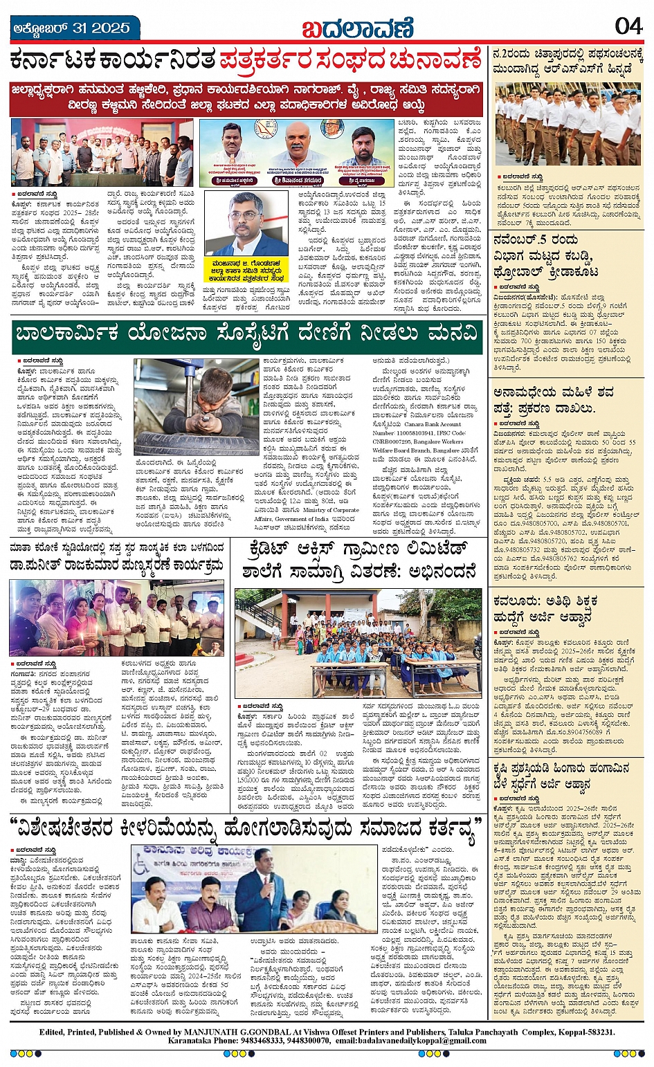 ಬದಲಾವಣೆ 31 OCTOBER 2025 Page: 4 October 31, 2025 << First << 4 >> Last >> Page 1Page 2Page 3Page 4 × ಬದಲಾವಣೆ 31 OCTOBER 2025 page-1page-2page-3page-4 << First << 4 >> Last >> page-1page-2page-3page-4 page-4