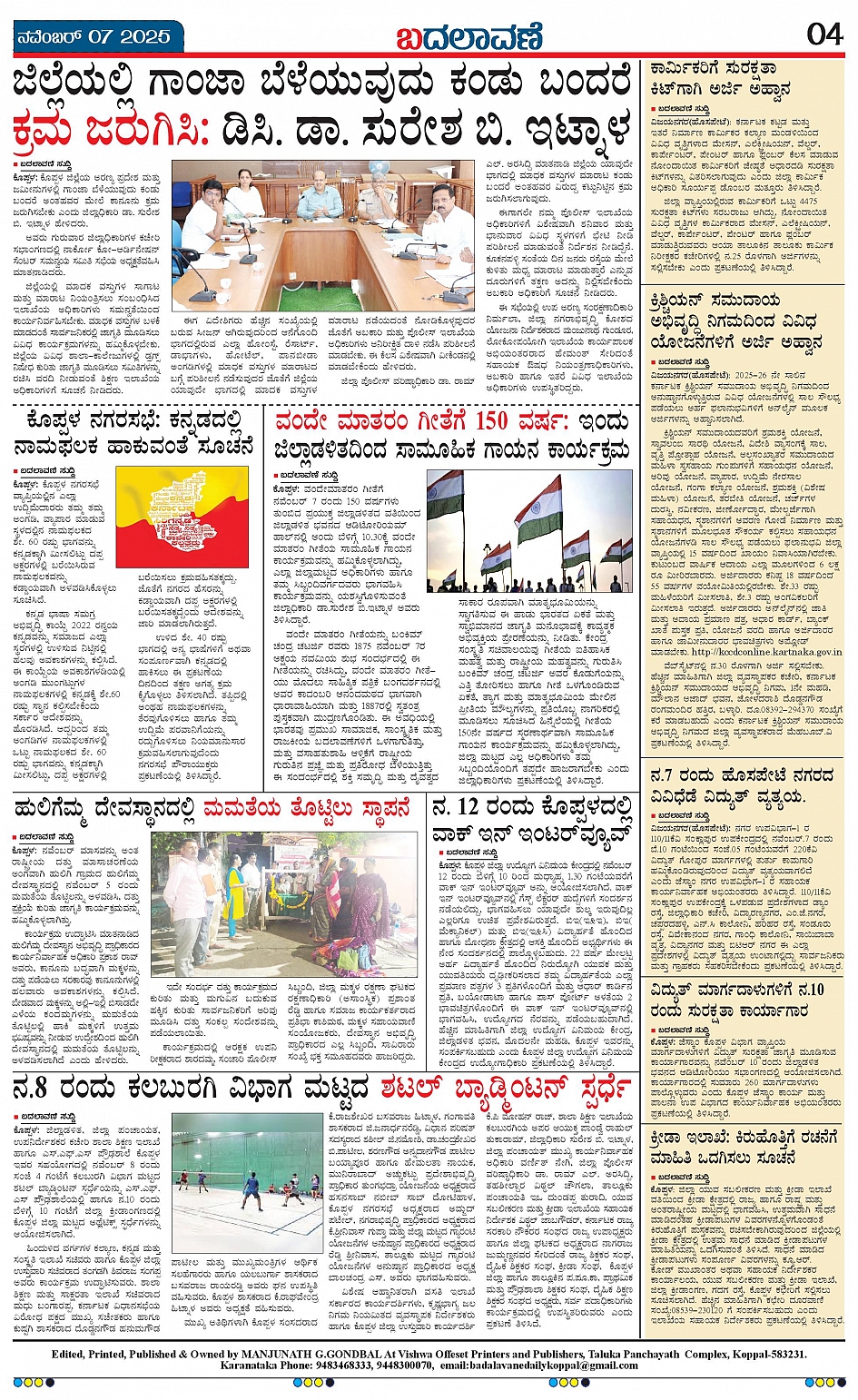 ಬದಲಾವಣೆ 07 November 2025 Page: 4 November 07, 2025 << First << 4 >> Last >> Page 1Page 2Page 3Page 4 × ಬದಲಾವಣೆ 07 November 2025 page-1page-2page-3page-4 << First << 4 >> Last >> page-1page-2page-3page-4 page-4