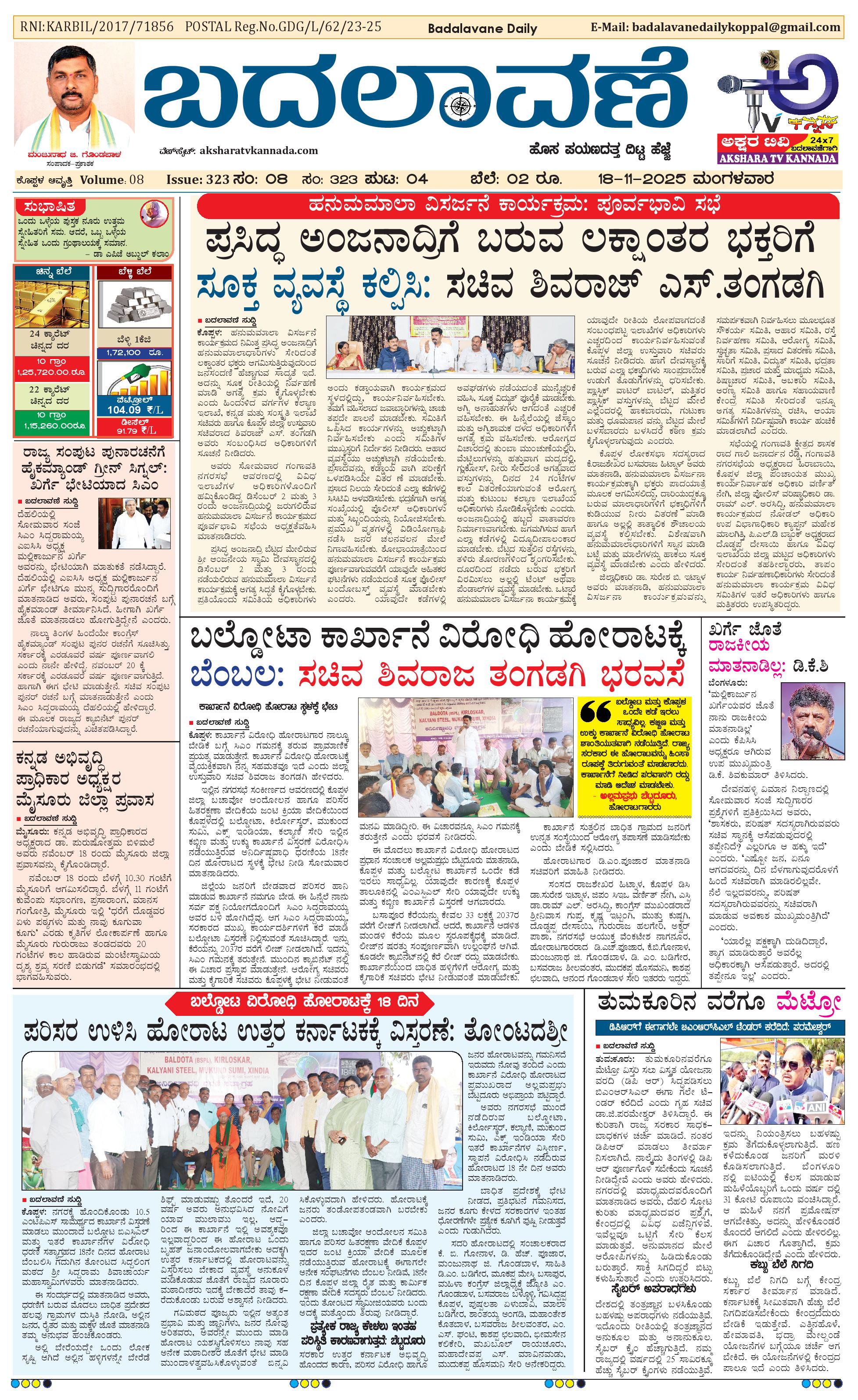 ಬದಲಾವಣೆ 18 November 2025 November 18, 2025 << First << 1 >> Last >> Page 1Page 2Page 3Page 4 × ಬದಲಾವಣೆ 18 November 2025 page-1page-2page-3page-4 << First << 1 >> Last >> page-1page-2page-3page-4 page-1