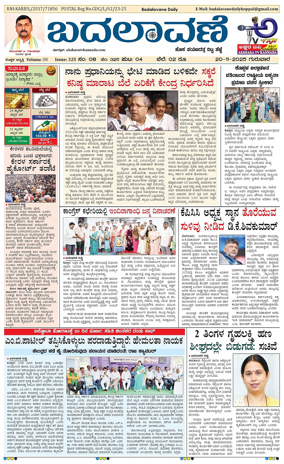 ಬದಲಾವಣೆ 20 November 2025 November 20, 2025 << First << 1 >> Last >> Page 1Page 2Page 3Page 4 × ಬದಲಾವಣೆ 20 November 2025 page-1page-2page-3page-4 << First << 1 >> Last >> page-1page-2page-3page-4 page-1