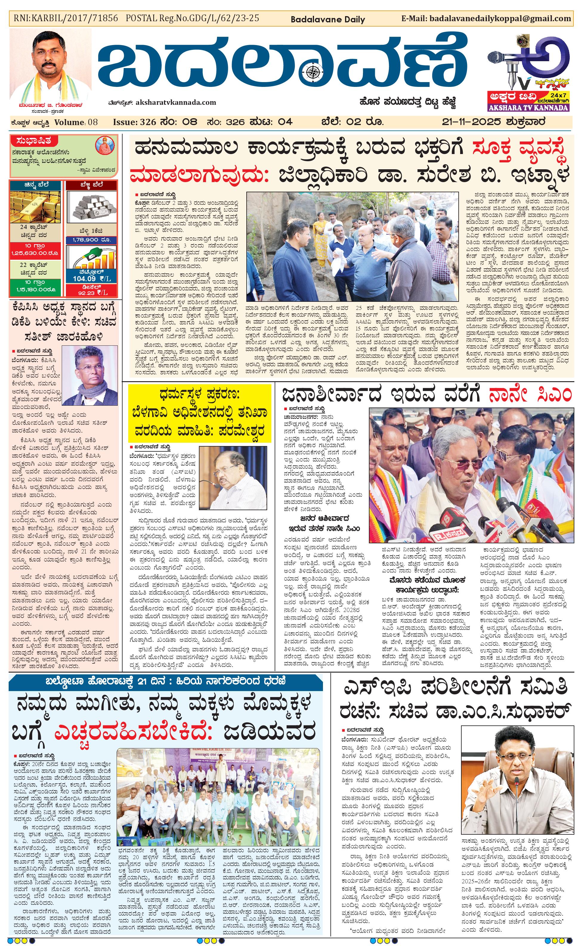 ಬದಲಾವಣೆ 21 November 2025 November 21, 2025 << First << 1 >> Last >> Page 1Page 2Page 3Page 4 × ಬದಲಾವಣೆ 21 November 2025 page-1page-2page-3page-4 << First << 1 >> Last >> page-1page-2page-3page-4 page-1