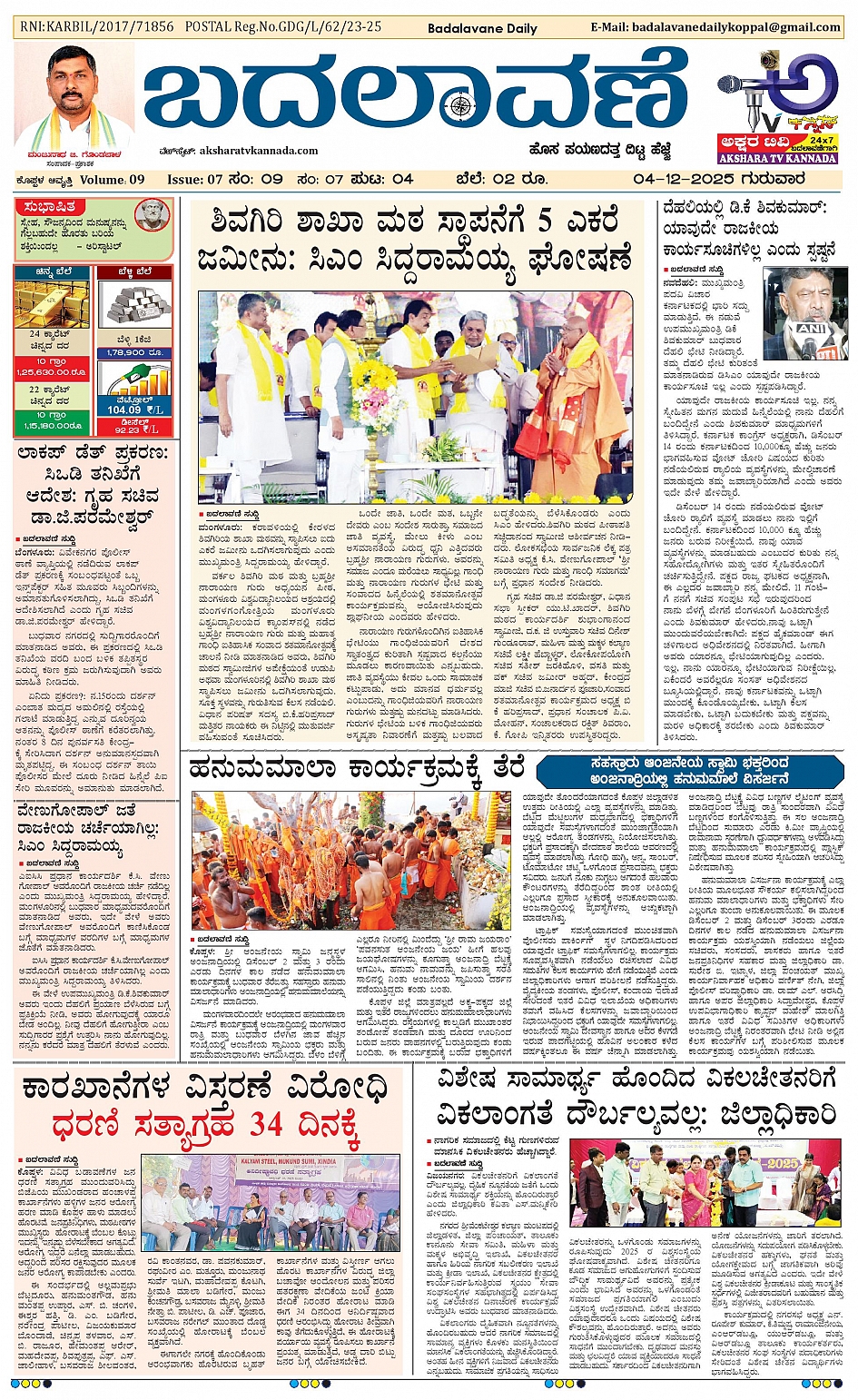 ಬದಲಾವಣೆ 04 December 2025 December 04, 2025 << First << 1 >> Last >> Page 1Page 2Page 3Page 4 × ಬದಲಾವಣೆ 04 December 2025 page-1page-2page-3page-4 << First << 1 >> Last >> page-1page-2page-3page-4 page-1