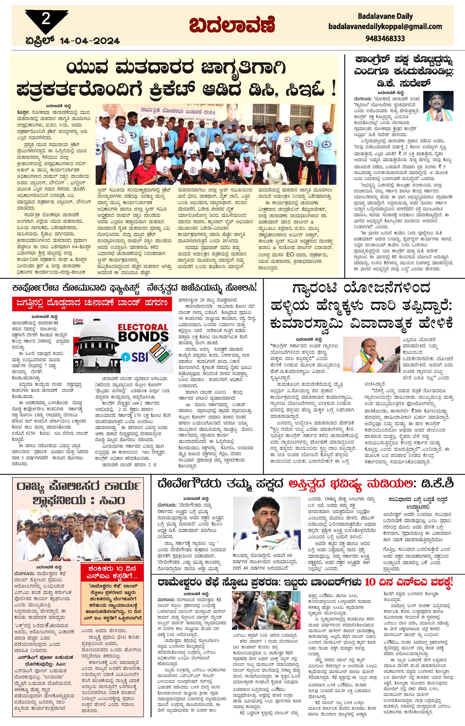 ಬದಲಾವಣೆ 14 April 2024 Page: 2 April 14, 2024 << First << 2 >> Last >> Page 1Page 2Page 3Page 4 × ಬದಲಾವಣೆ 14 April 2024 page-1page-2page-3page-4 << First << 2 >> Last >> page-1page-2page-3page-4 page-2