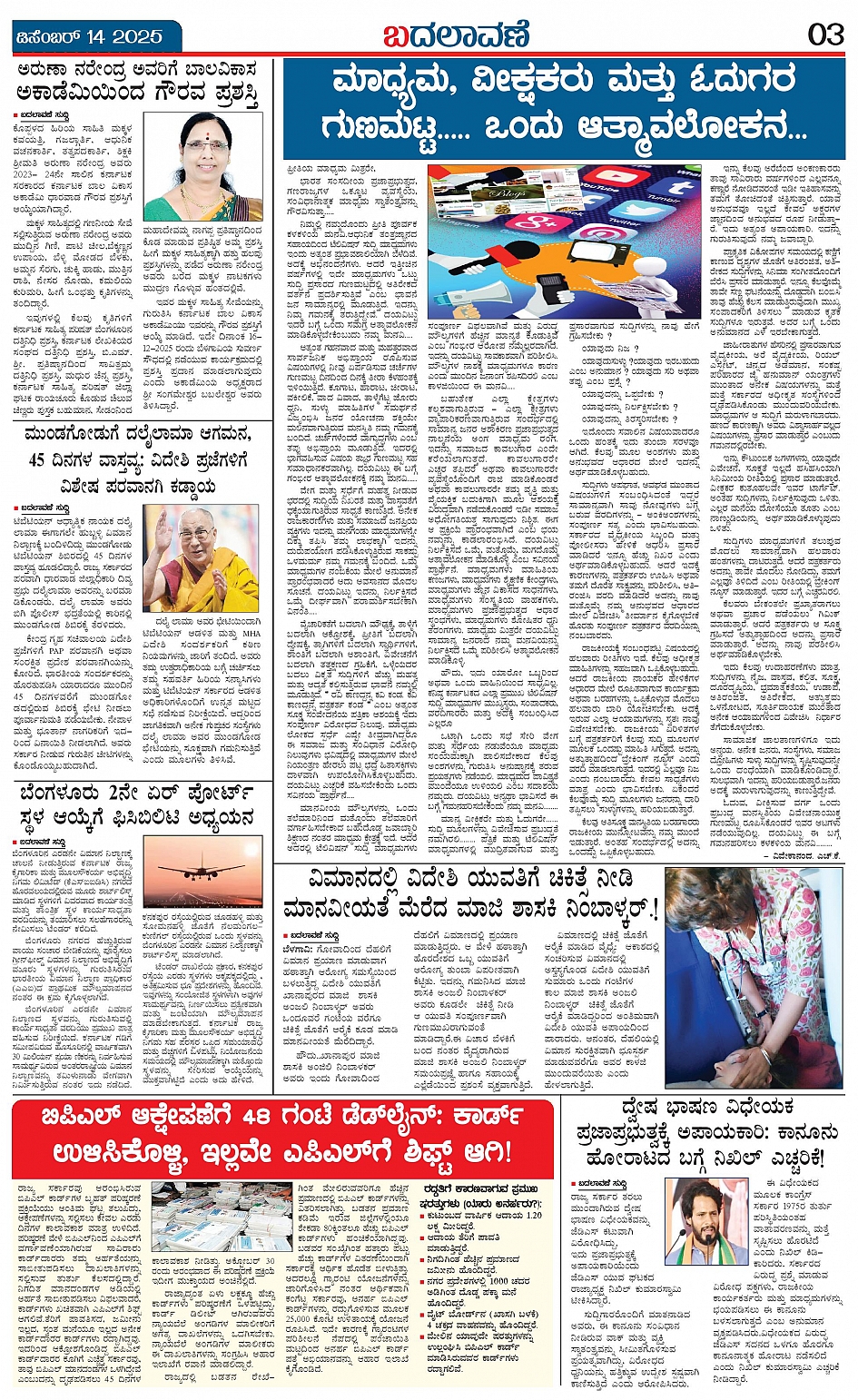 ಬದಲಾವಣೆ 14 December 2025 Page: 3 December 14, 2025 << First << 3 >> Last >> Page 1Page 2Page 3Page 4 × ಬದಲಾವಣೆ 14 December 2025 page-1page-2page-3page-4 << First << 3 >> Last >> page-1page-2page-3page-4 page-3