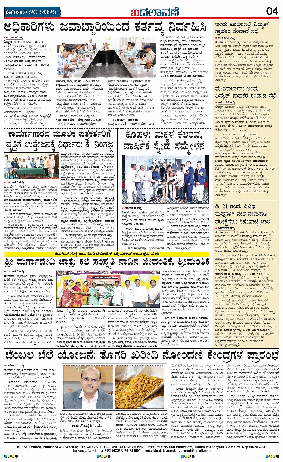 ಬದಲಾವಣೆ 20 December 2025 Page: 4 December 20, 2025 << First << 4 >> Last >> Page 1Page 2Page 3Page 4 × ಬದಲಾವಣೆ 20 December 2025 page-1page-2page-3page-4 << First << 4 >> Last >> page-1page-2page-3page-4 page-4