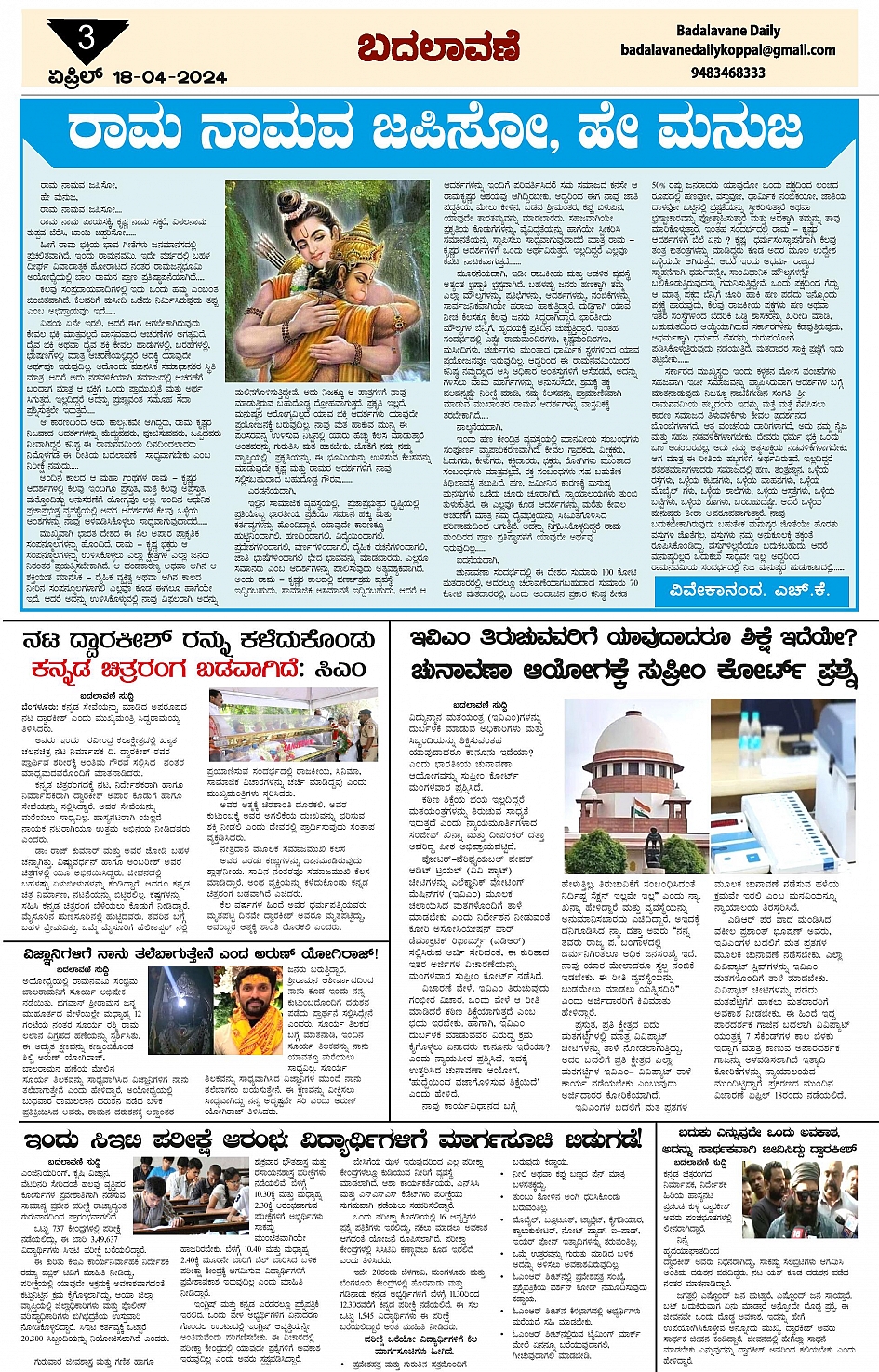 ಬದಲಾವಣೆ 18 April 2024 Page: 3 April 18, 2024 << First << 3 >> Last >> Page 1Page 2Page 3Page 4 × ಬದಲಾವಣೆ 18 April 2024 page-1page-2page-3page-4 << First << 3 >> Last >> page-1page-2page-3page-4 page-3