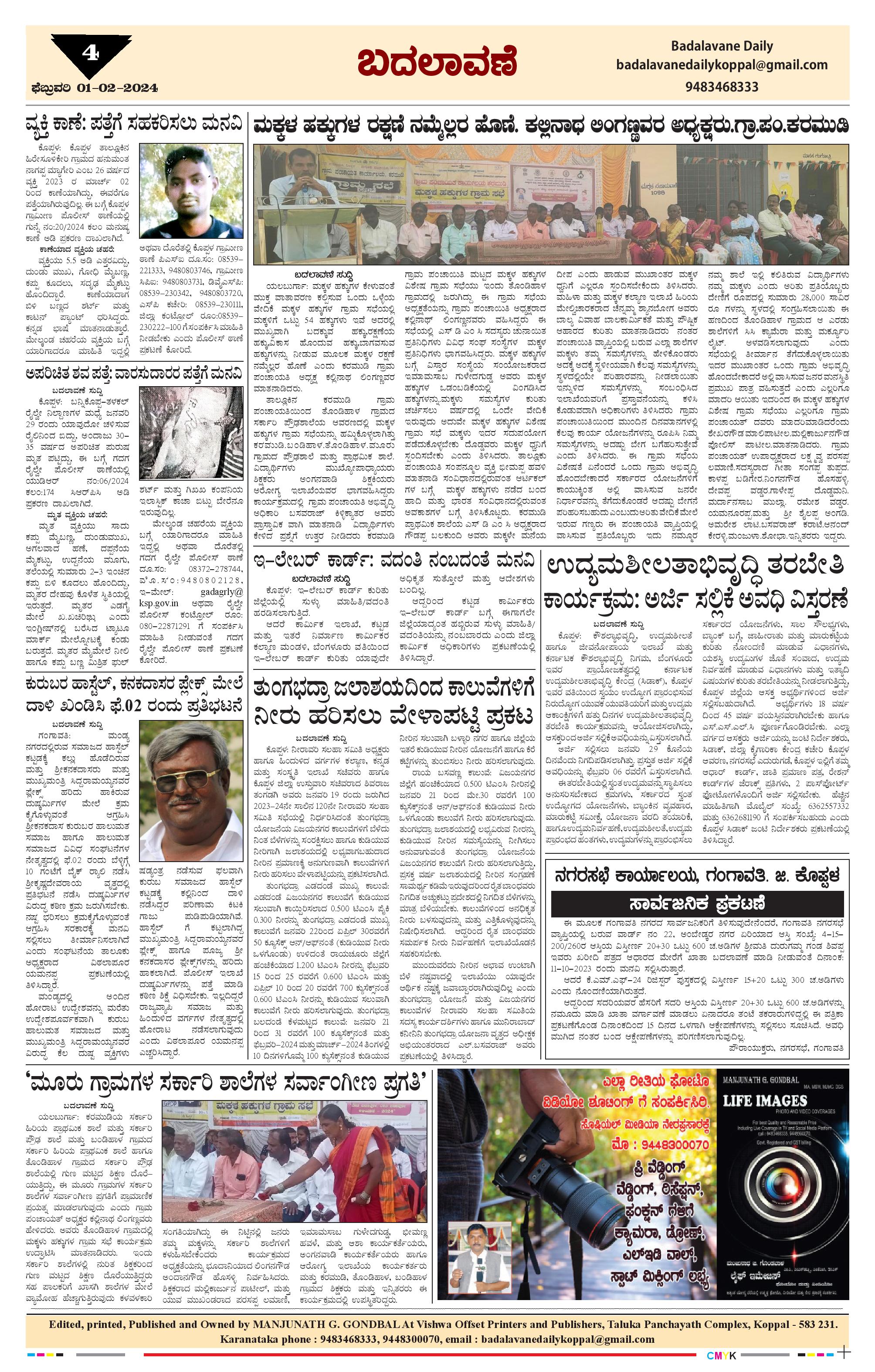 ಬದಲಾವಣೆ 1 Feb 2024 Page: 4 February 01, 2024 << First << 4 >> Last >> Page 1Page 2Page 3Page 4 × ಬದಲಾವಣೆ 1 Feb 2024 PAGE 01Badalavane daily_01-02-2024-2-page-002Badalavane daily_01-02-2024-2-page-003Badalavane daily_01-02-2024-2-page-004 << First << 4 >> Last >> PAGE 01Badalavane daily_01-02-2024-2-page-002Badalavane daily_01-02-2024-2-page-003Badalavane daily_01-02-2024-2-page-004 Badalavane daily_01-02-2024-2-page-004