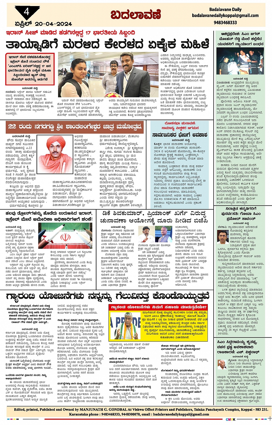 ಬದಲಾವಣೆ 20 April 2024 Page: 4 April 20, 2024 << First << 4 >> Last >> Page 1Page 2Page 3Page 4 × ಬದಲಾವಣೆ 20 April 2024 page-1page-2page-3page-4 << First << 4 >> Last >> page-1page-2page-3page-4 page-4