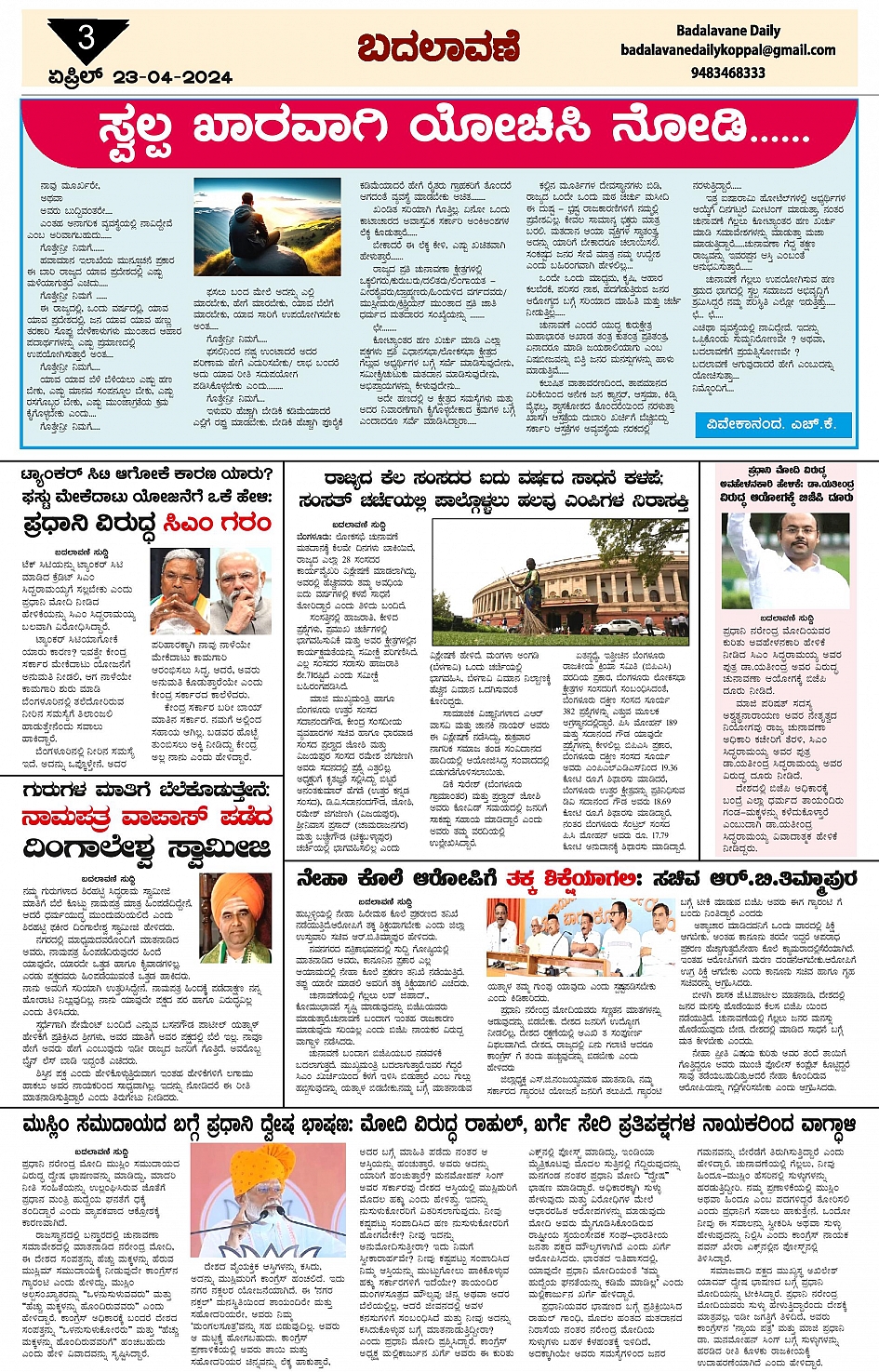 ಬದಲಾವಣೆ 23 April 2024 Page: 3 April 23, 2024 << First << 3 >> Last >> Page 1Page 2Page 3Page 4 × ಬದಲಾವಣೆ 23 April 2024 page-1page-2page-3page-4 << First << 3 >> Last >> page-1page-2page-3page-4 page-3