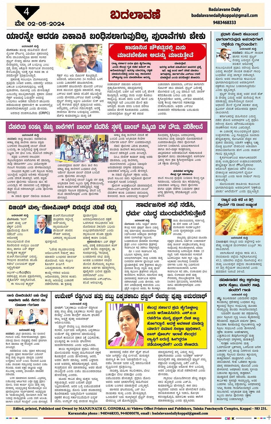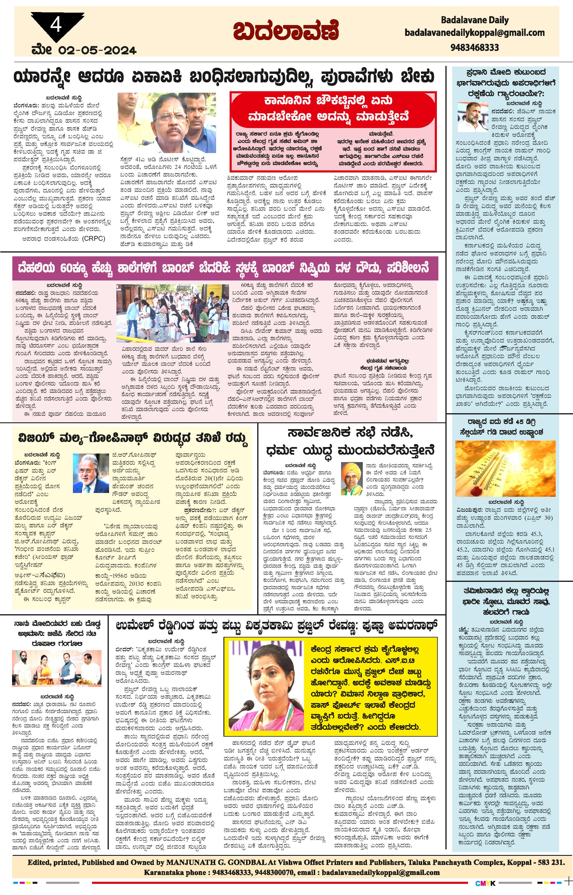 ಬದಲಾವಣೆ 02 May 2024 Page: 4 May 02, 2024 << First << 4 >> Last >> Page 1Page 2Page 3Page 4 × ಬದಲಾವಣೆ 02 May 2024 page-1page-2page-3page-4 << First << 4 >> Last >> page-1page-2page-3page-4 page-4