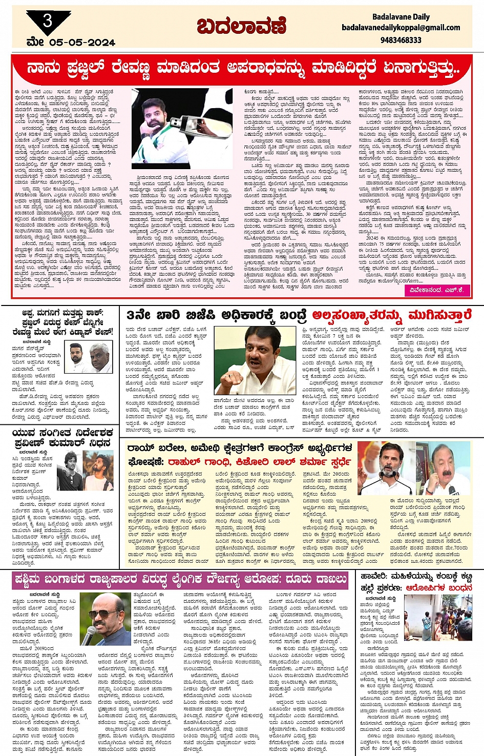 ಬದಲಾವಣೆ 05 May 2024 Page: 3 May 05, 2024 << First << 3 >> Last >> Page 1Page 2Page 3Page 4 × ಬದಲಾವಣೆ 05 May 2024 page-1page-2page-3page-4 << First << 3 >> Last >> page-1page-2page-3page-4 page-3
