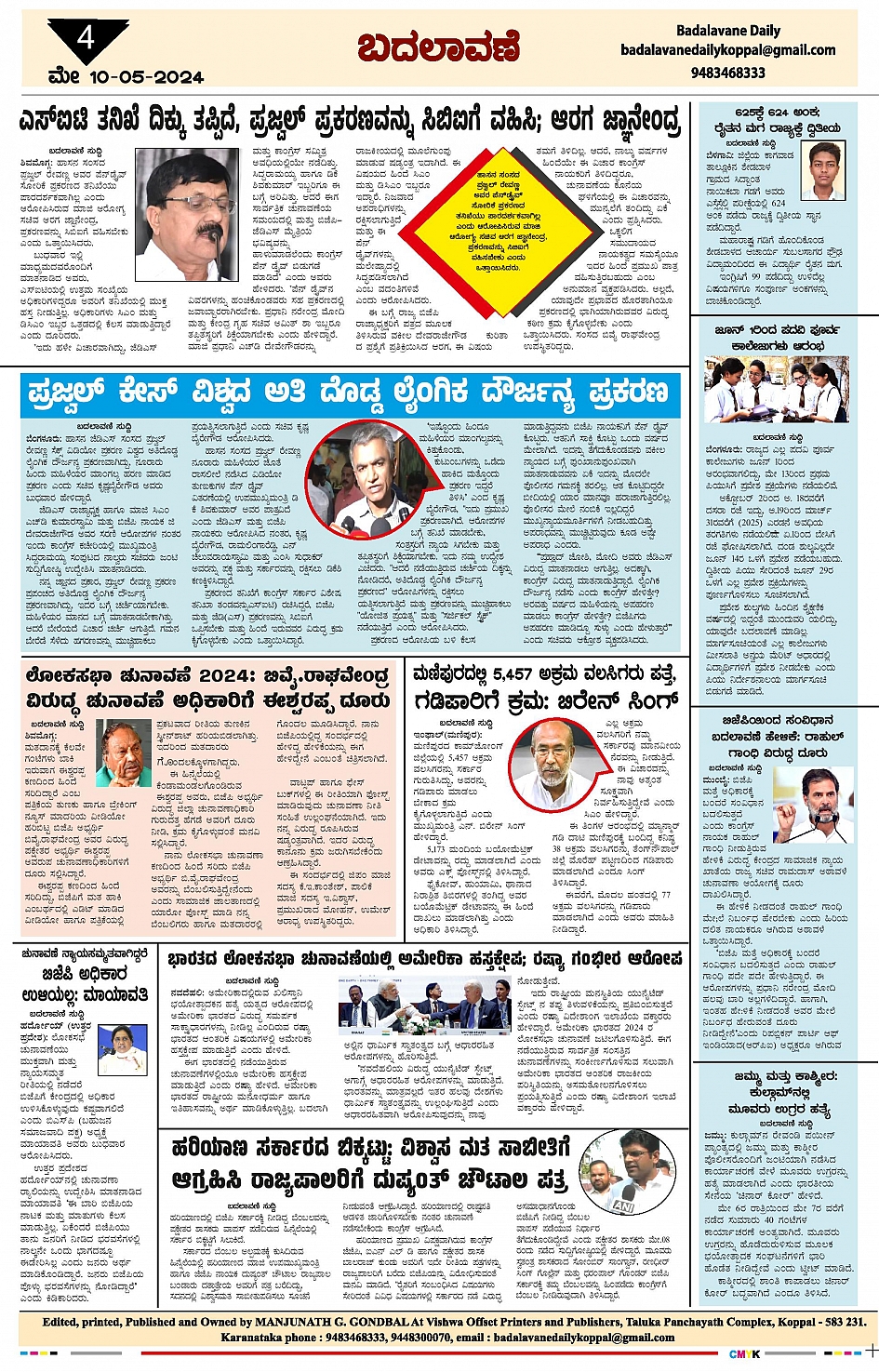 ಬದಲಾವಣೆ 10 May 2024 Page: 4 May 10, 2024 << First << 4 >> Last >> Page 1Page 2Page 3Page 4 × ಬದಲಾವಣೆ 10 May 2024 page-1page-2page-3page-4 << First << 4 >> Last >> page-1page-2page-3page-4 page-4