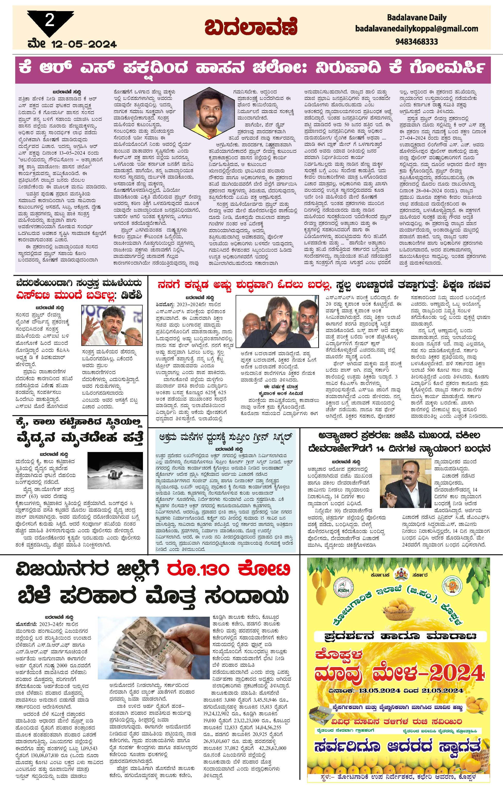 ಬದಲಾವಣೆ 12 May 2024 Page: 2 May 12, 2024 << First << 2 >> Last >> Page 1Page 2Page 3Page 4 × ಬದಲಾವಣೆ 12 May 2024 page-1page-2page-3page-4 << First << 2 >> Last >> page-1page-2page-3page-4 page-2