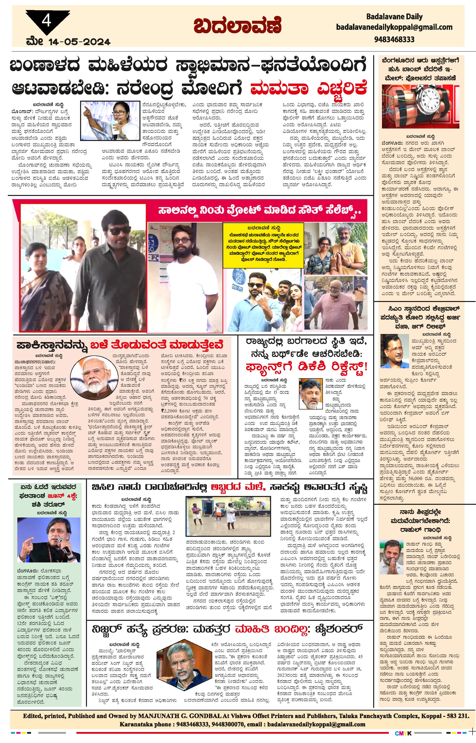 ಬದಲಾವಣೆ 14 May 2024 Page: 4 May 14, 2024 << First << 4 >> Last >> Page 1Page 2Page 3Page 4 × ಬದಲಾವಣೆ 14 May 2024 page-1page-2page-3page-4 << First << 4 >> Last >> page-1page-2page-3page-4 page-4