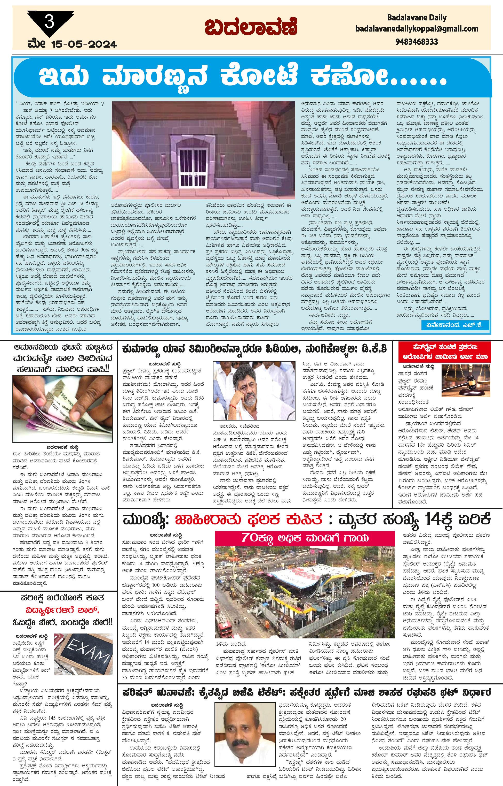 ಬದಲಾವಣೆ 15 May 2024 Page: 3 May 15, 2024 << First << 3 >> Last >> Page 1Page 2Page 3Page 4 × ಬದಲಾವಣೆ 15 May 2024 page-1page-2page-3page-4 << First << 3 >> Last >> page-1page-2page-3page-4 page-3