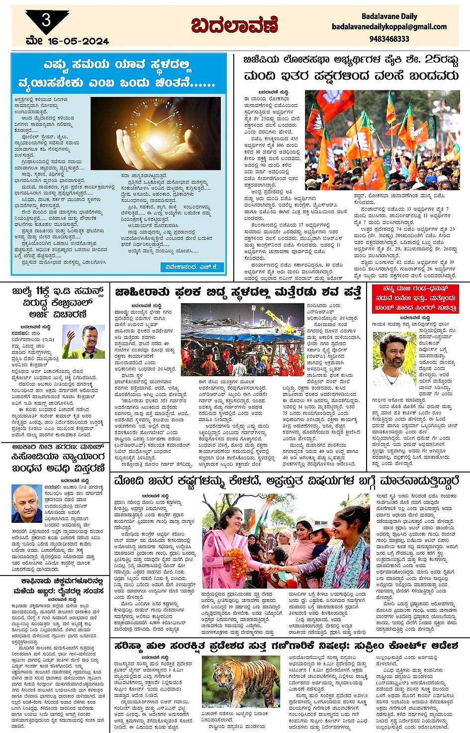 ಬದಲಾವಣೆ 16 May 2024 Page: 3 May 16, 2024 << First << 3 >> Last >> Page 1Page 2Page 3Page 4 × ಬದಲಾವಣೆ 16 May 2024 page-1page-2page-3page-4 << First << 3 >> Last >> page-1page-2page-3page-4 page-3