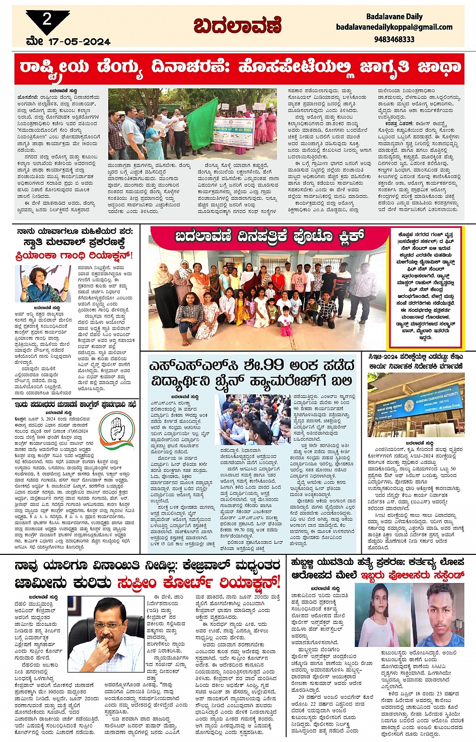 ಬದಲಾವಣೆ 17 May 2024 Page: 2 May 17, 2024 << First << 2 >> Last >> Page 1Page 2Page 3Page 4 × ಬದಲಾವಣೆ 17 May 2024 page-1page-2page-3page-4 << First << 2 >> Last >> page-1page-2page-3page-4 page-2
