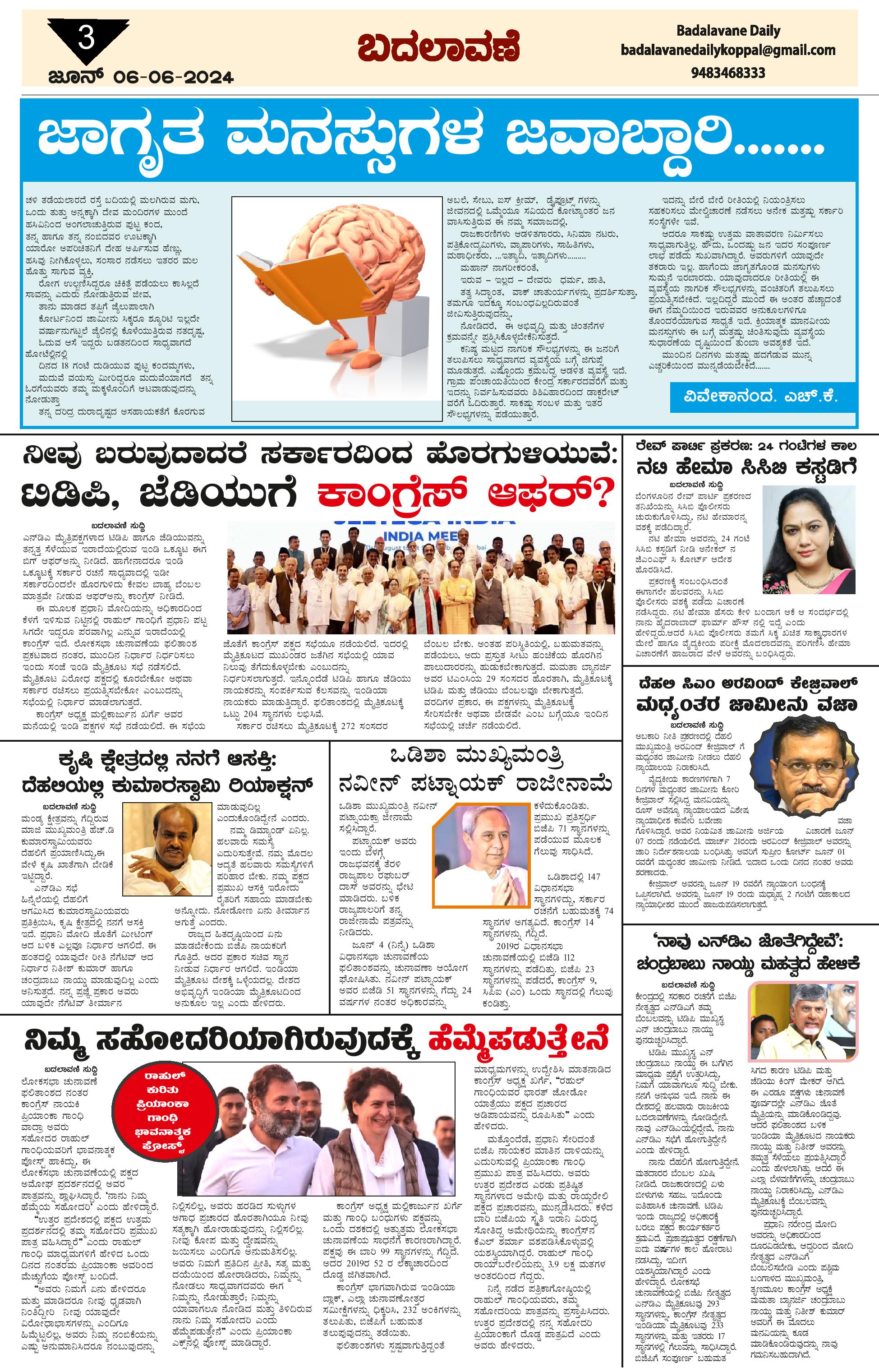 ಬದಲಾವಣೆ 06 June 2024 Page: 3 June 06, 2024 << First << 3 >> Last >> Page 1Page 2Page 3Page 4 × ಬದಲಾವಣೆ 06 June 2024 page-1page-2page-3page-4 << First << 3 >> Last >> page-1page-2page-3page-4 page-3